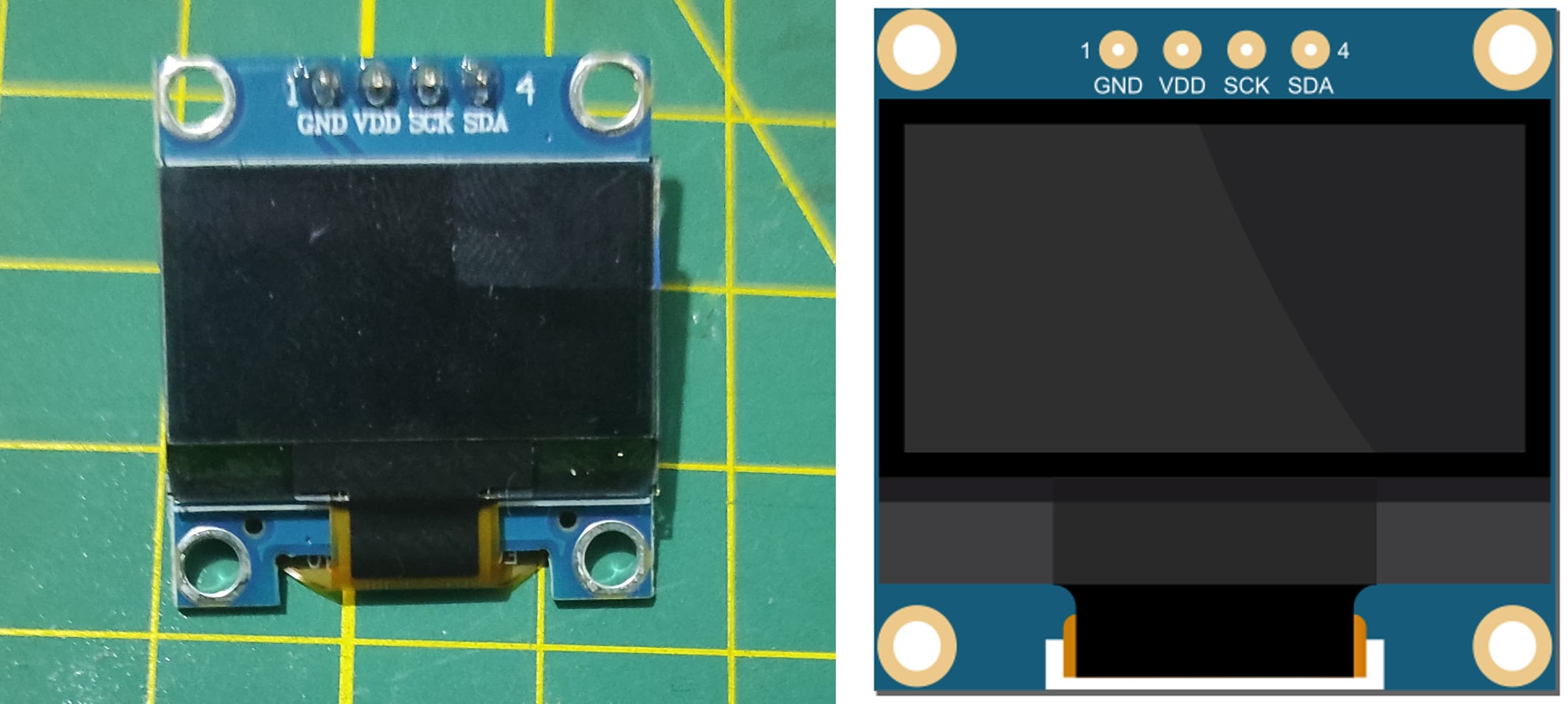 The model we’re using here has only four pins and communicates with the Arduino using I2C communication protocol. There are models that come with an extra RESET pin. There are also other OLED displays that communicate using SPI communication.