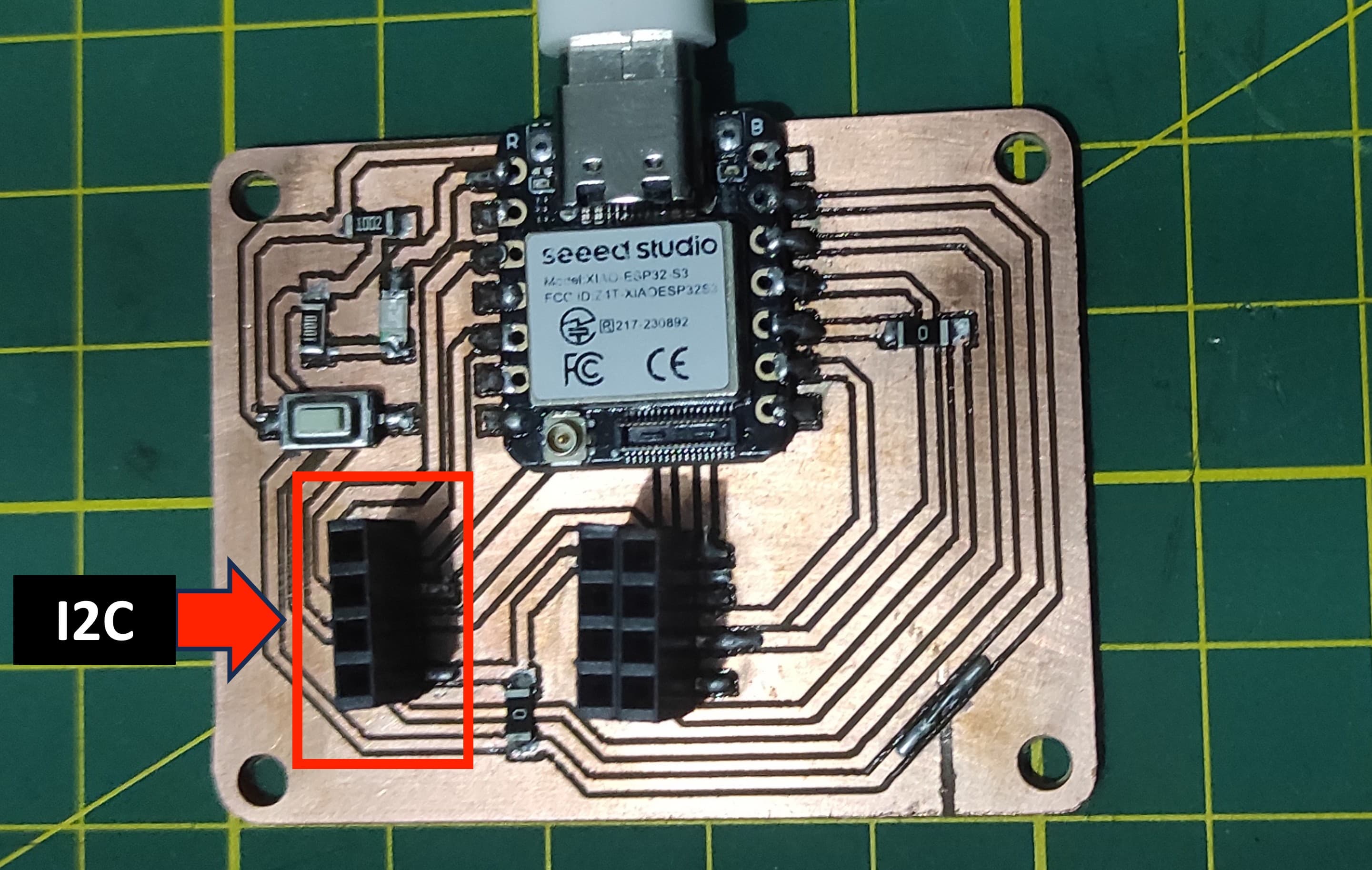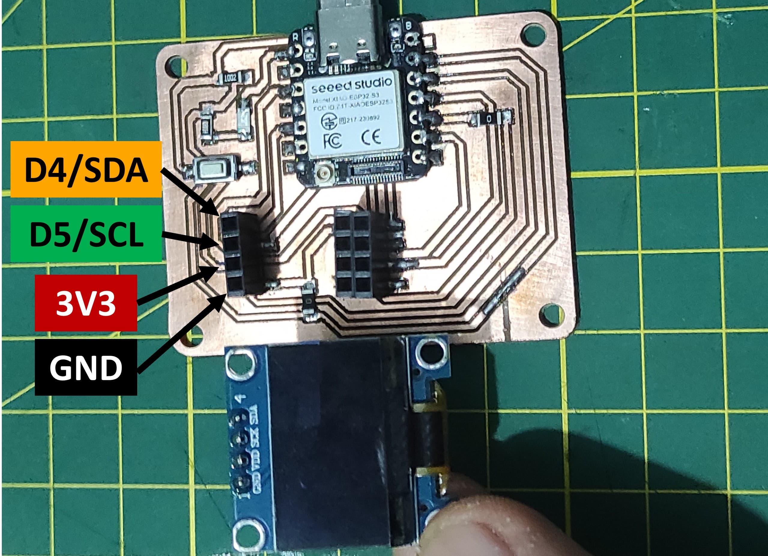 For this assignment, I used the PCB that I designed and manufactured during Week 8: Electronic Production. The board already includes an I2C header and port, which simplifies the integration of I2C devices. Because of this, I was able to connect the OLED display directly to the PCB without needing additional wiring or adapters. This allowed me to quickly test the display and verify that the communication through the I2C interface was working correctly.