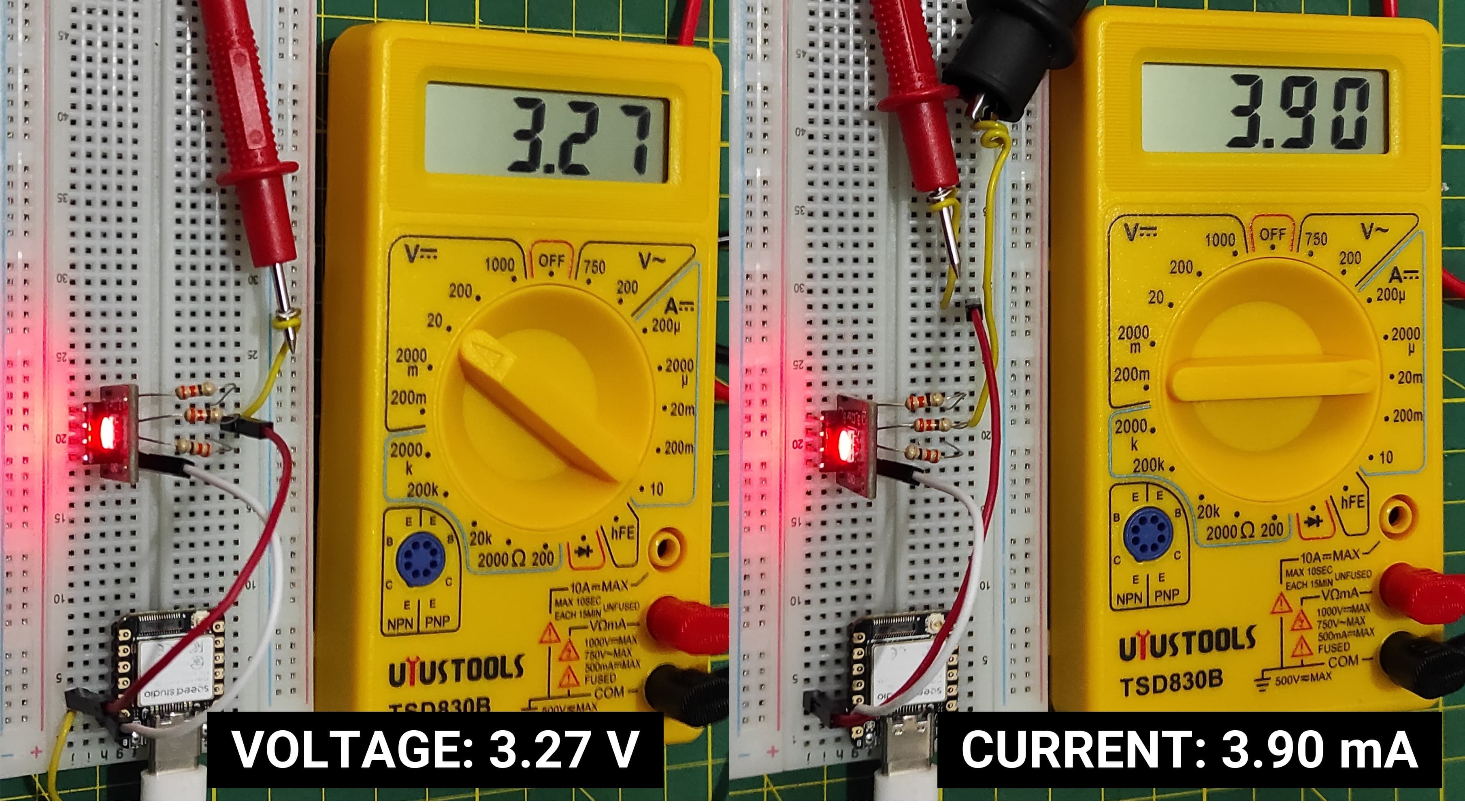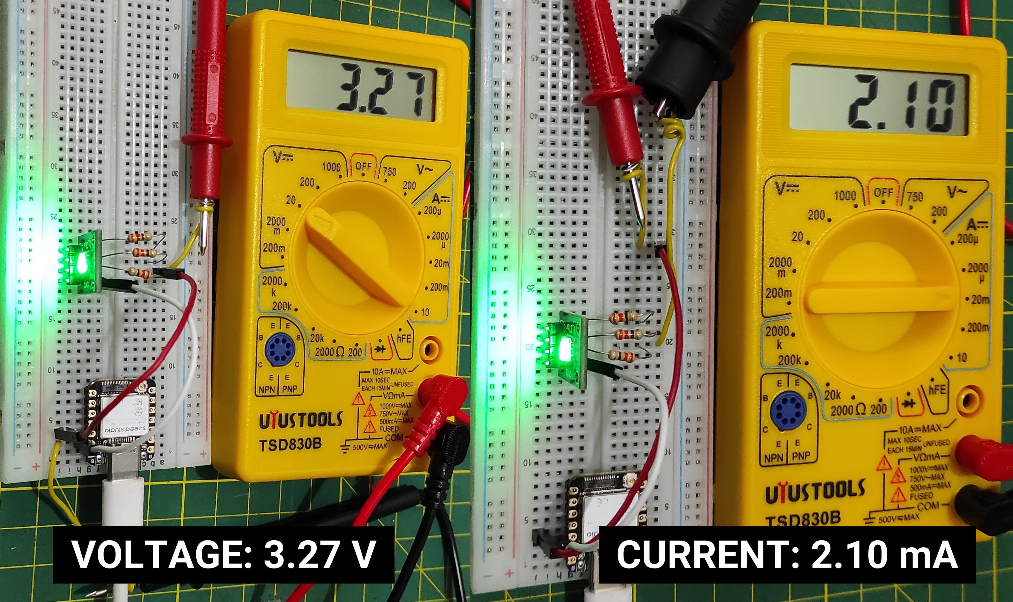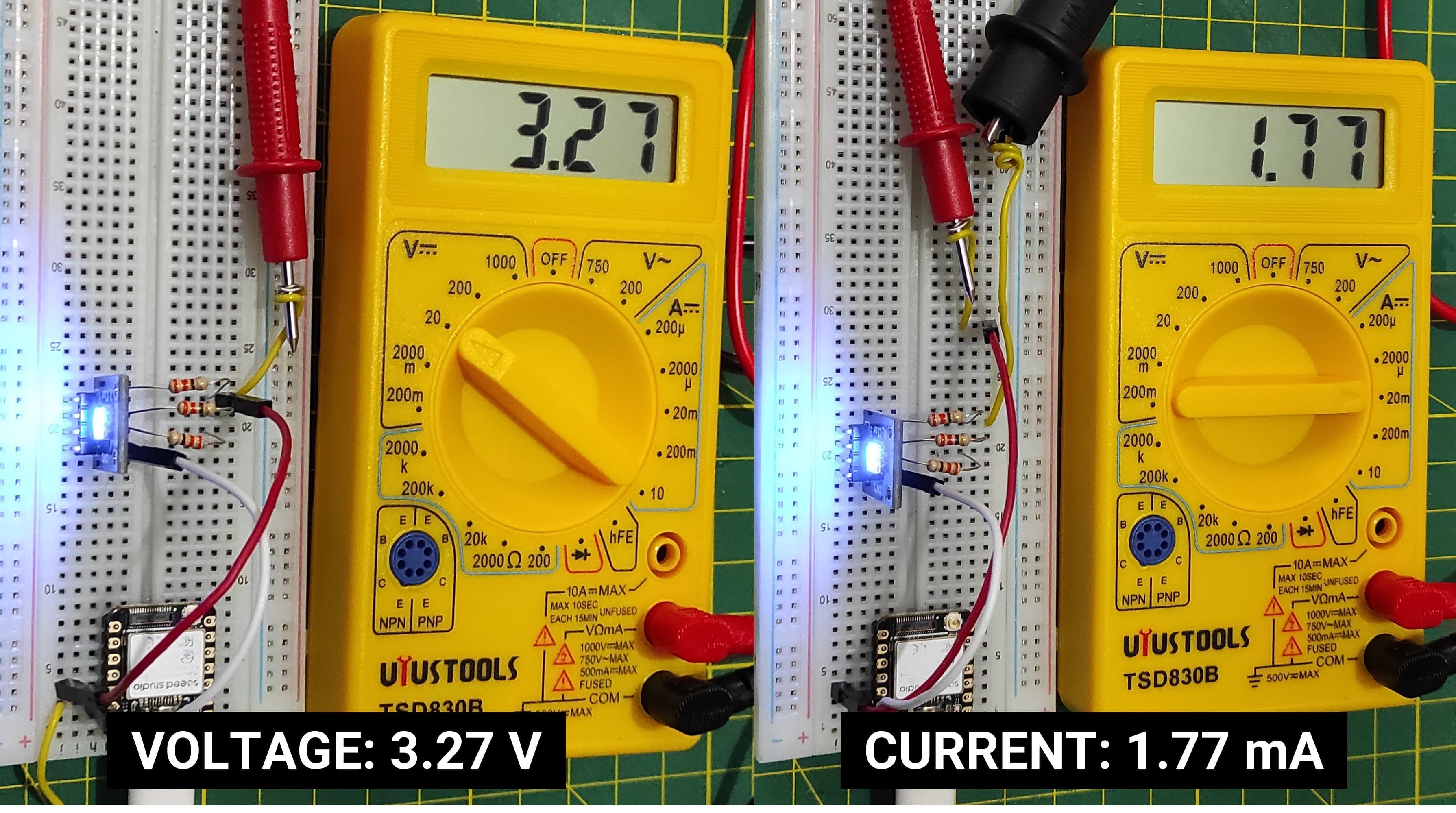 Power Calculation P = V × I P = 3.27 V × 3.90 mA P = 12.75 mW |