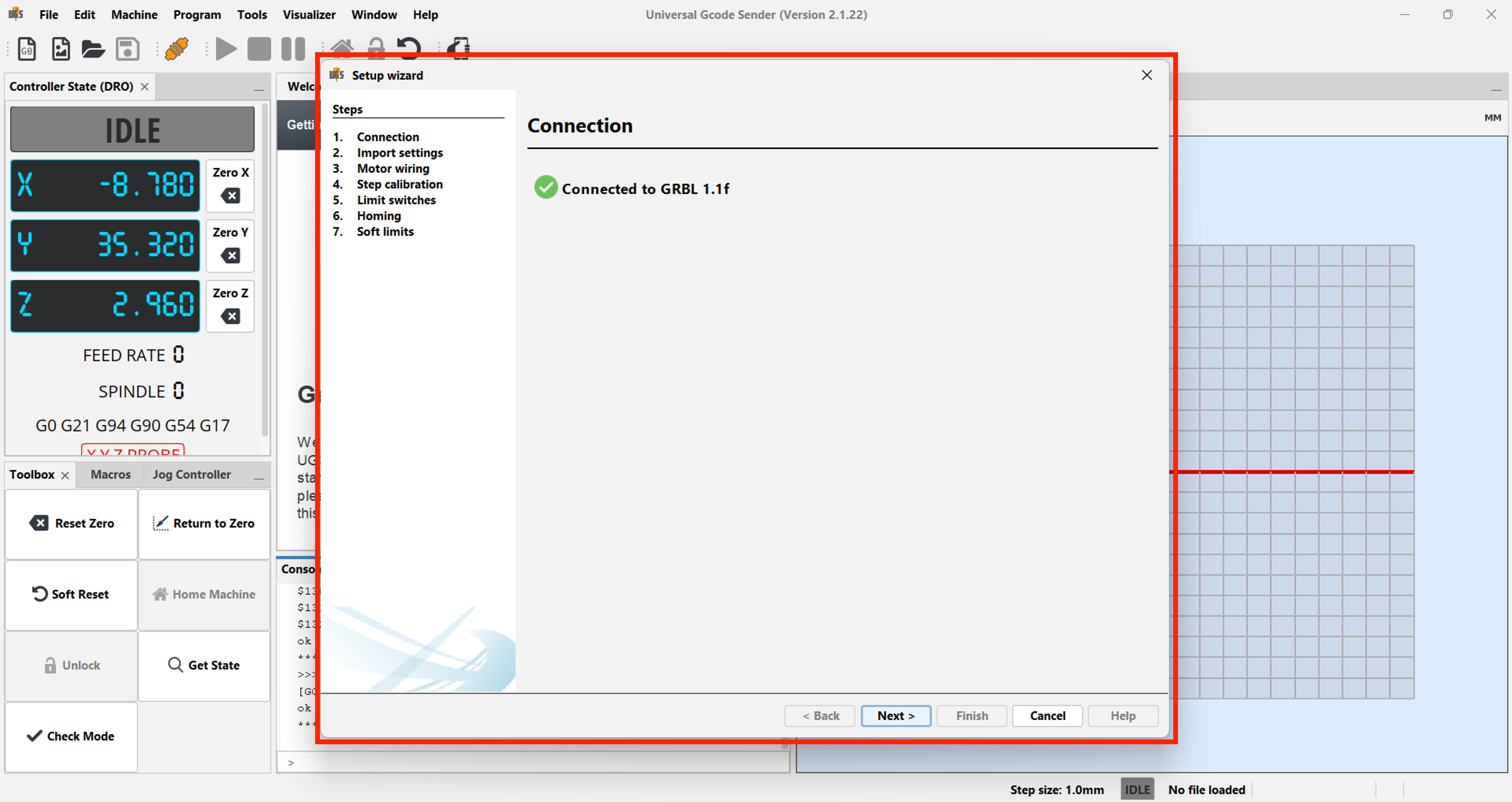 First, we need to configure the machine. To do this, go to the Machine menu and select “Setup Wizard.”