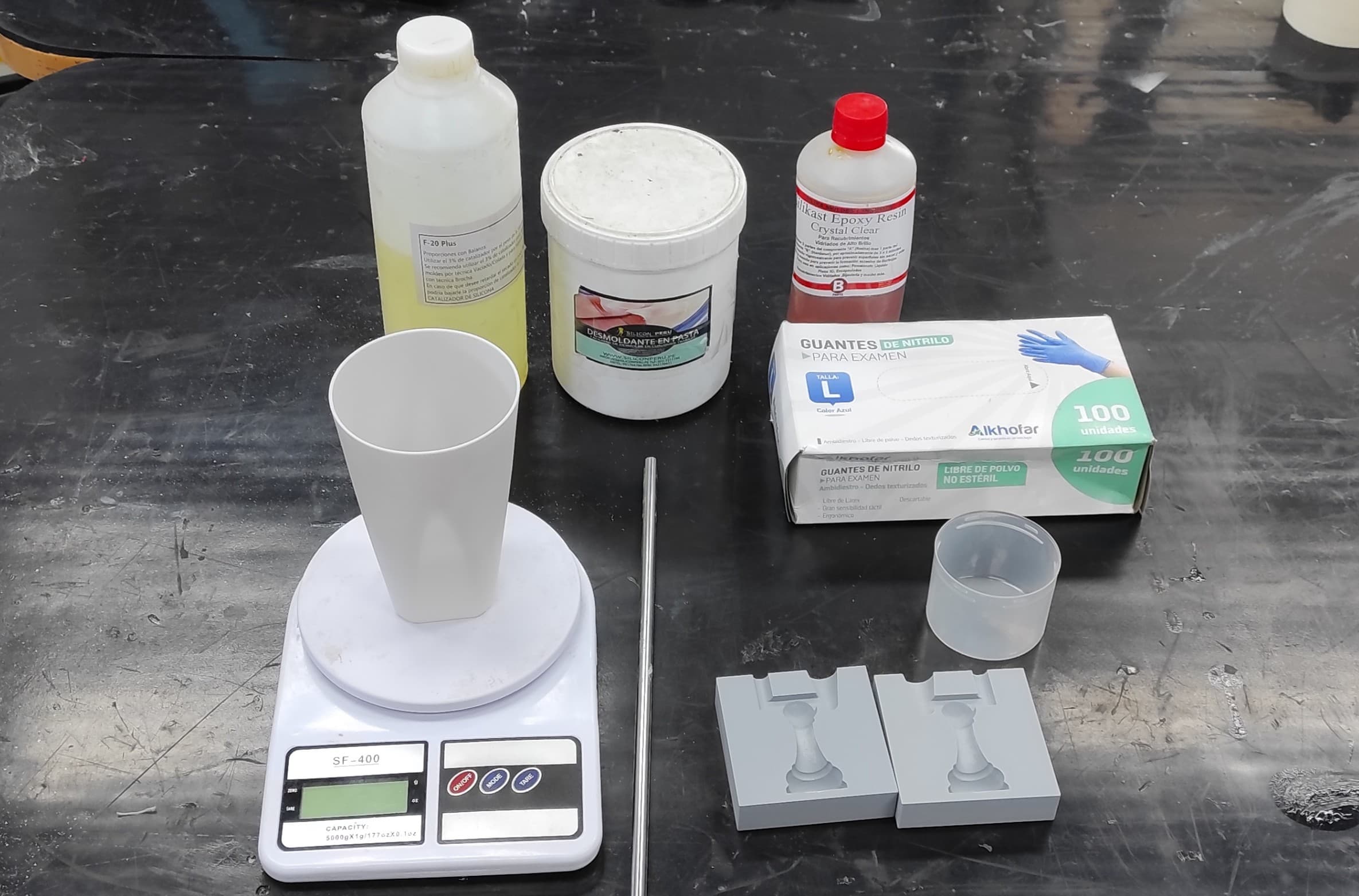 After printing the mold, I organized the workspace and gathered all the materials needed for the casting process.
