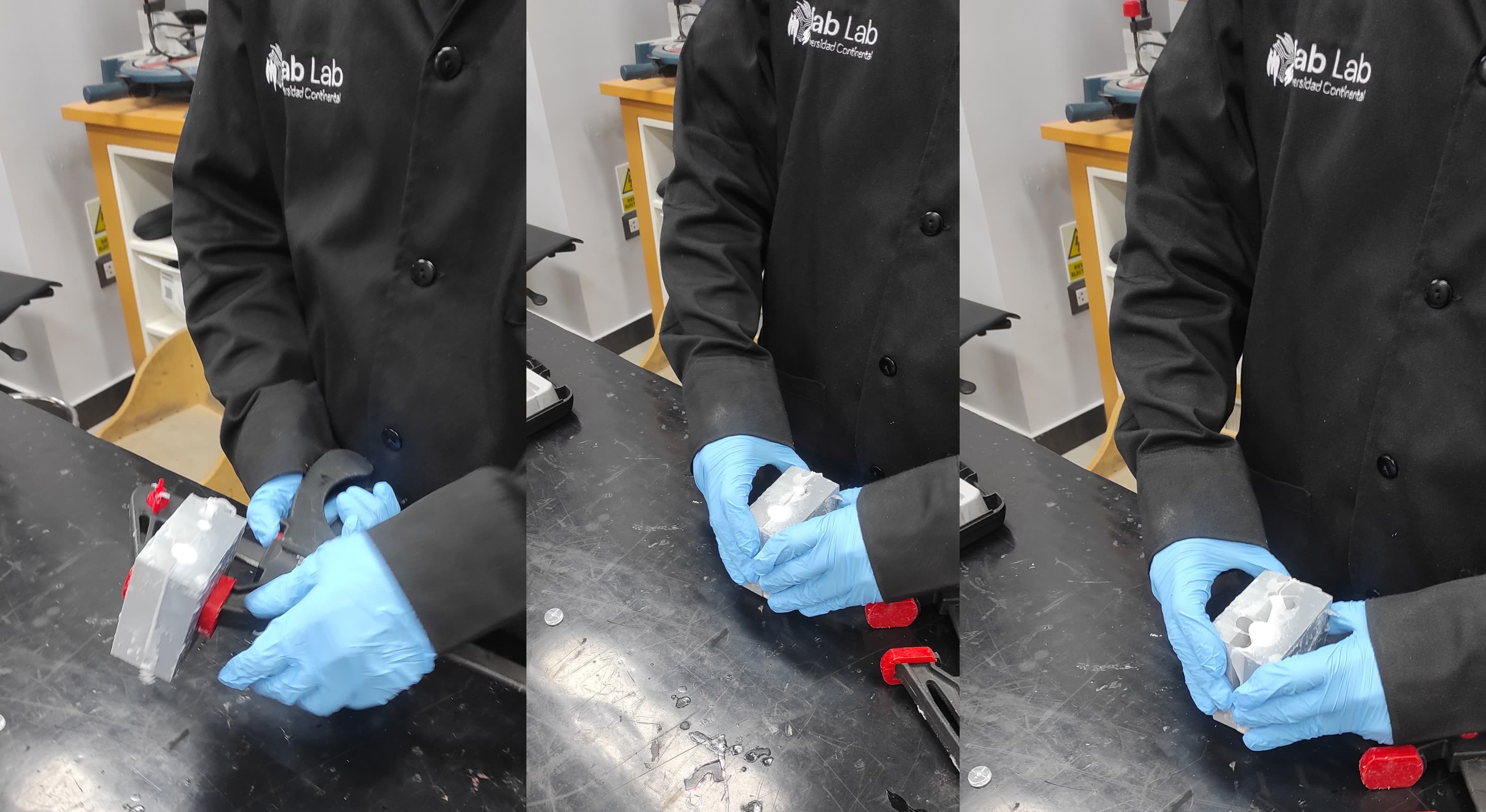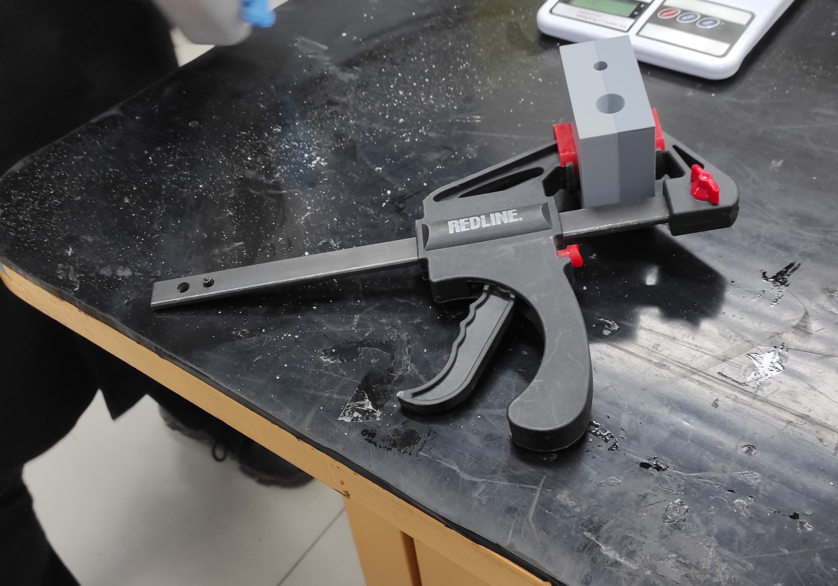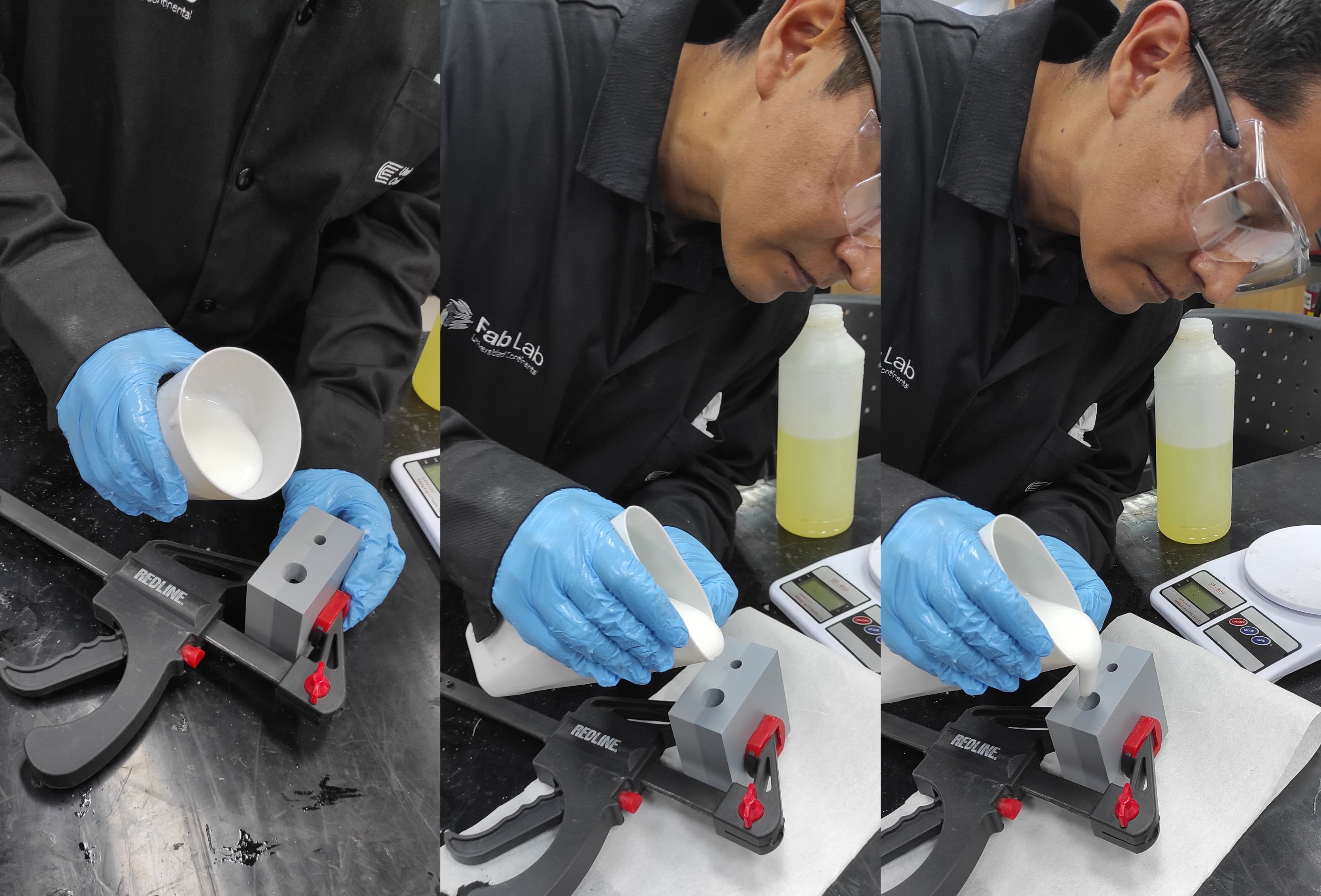 After that, I assembled the previously printed mold pieces and secured them with a clamp to hold the joint in place.