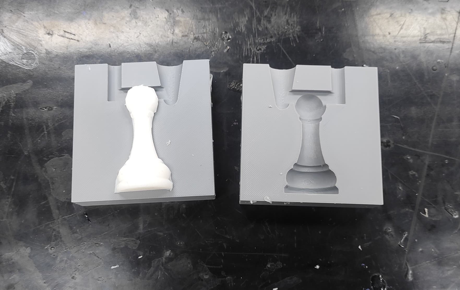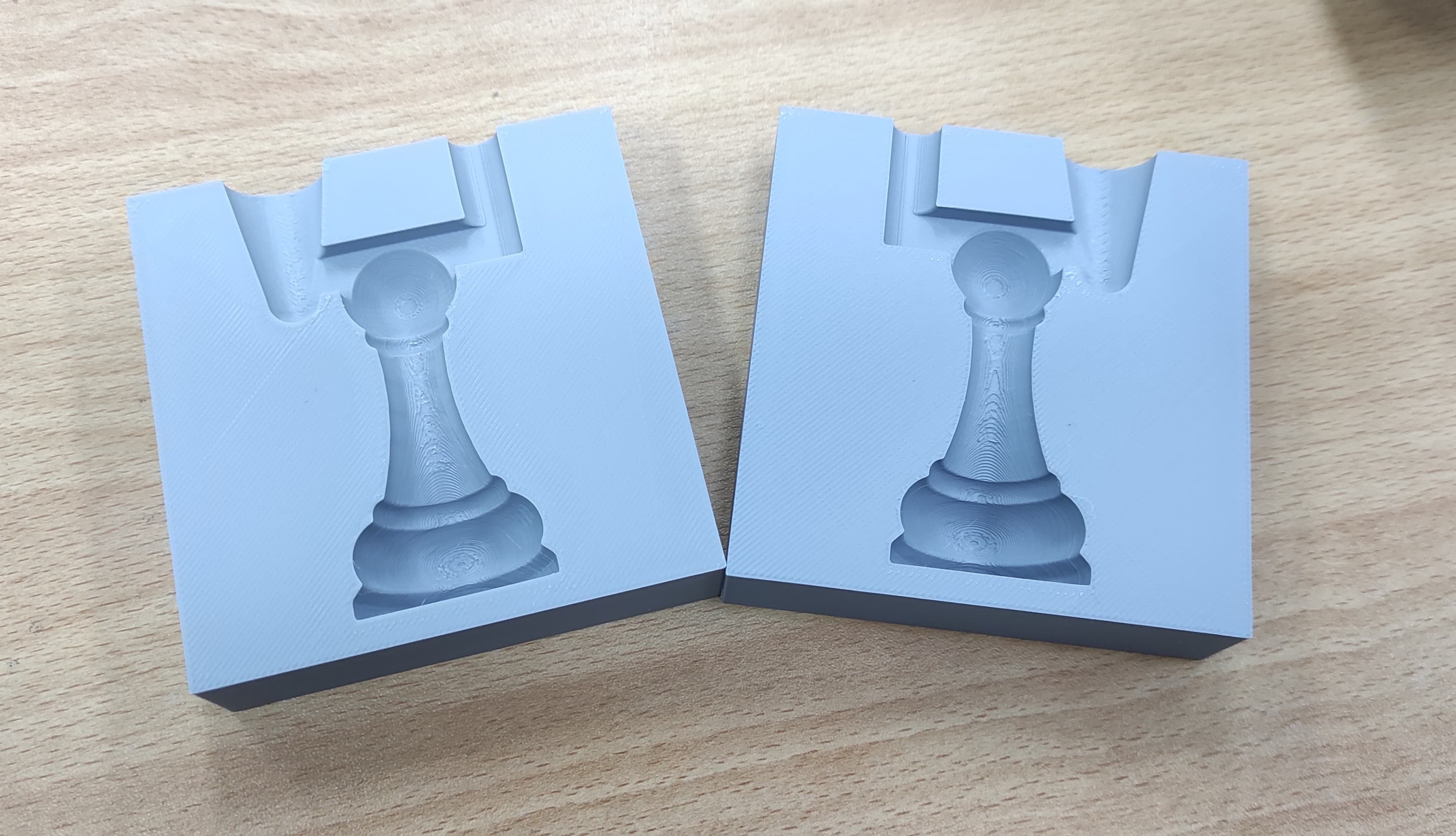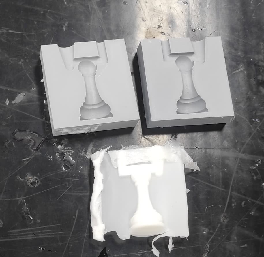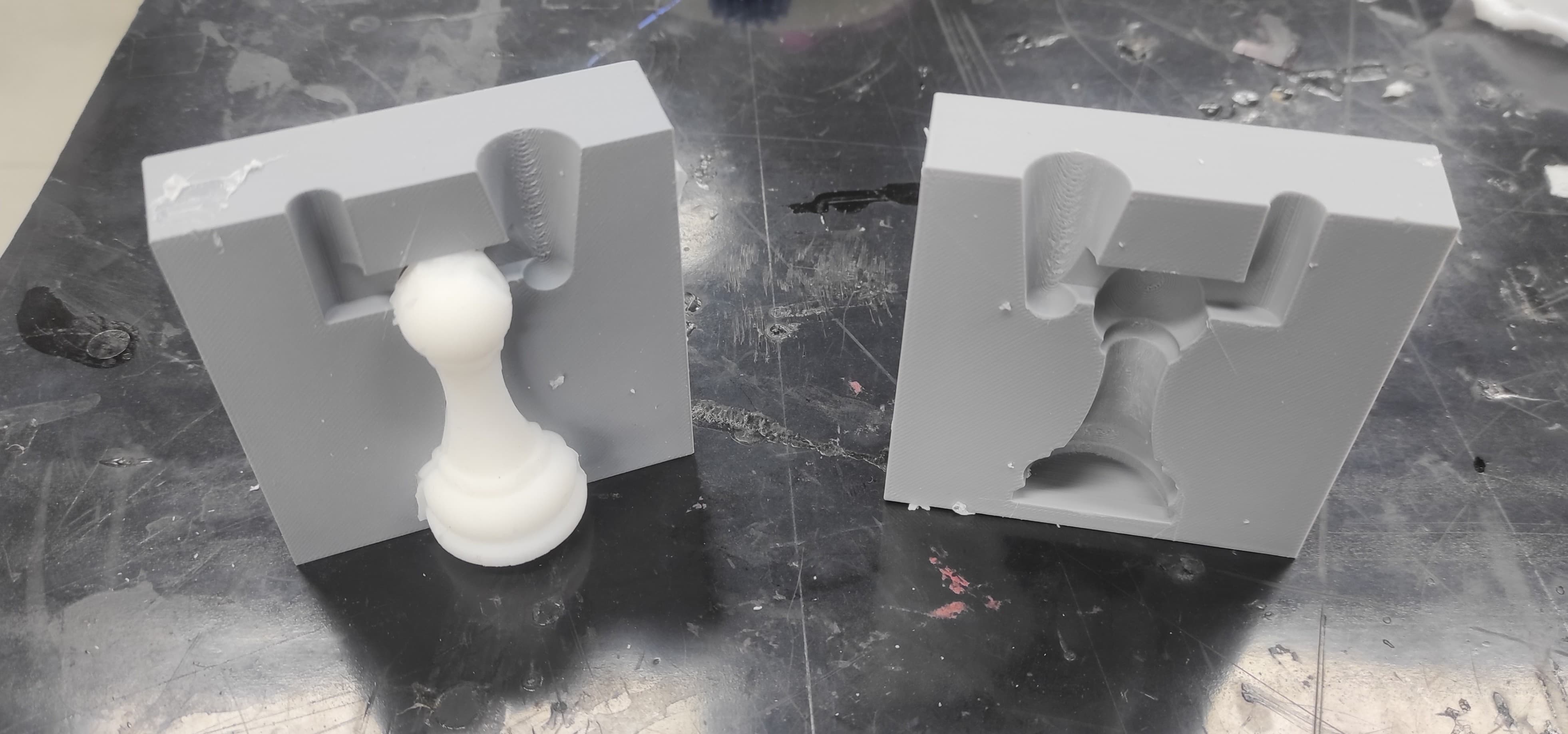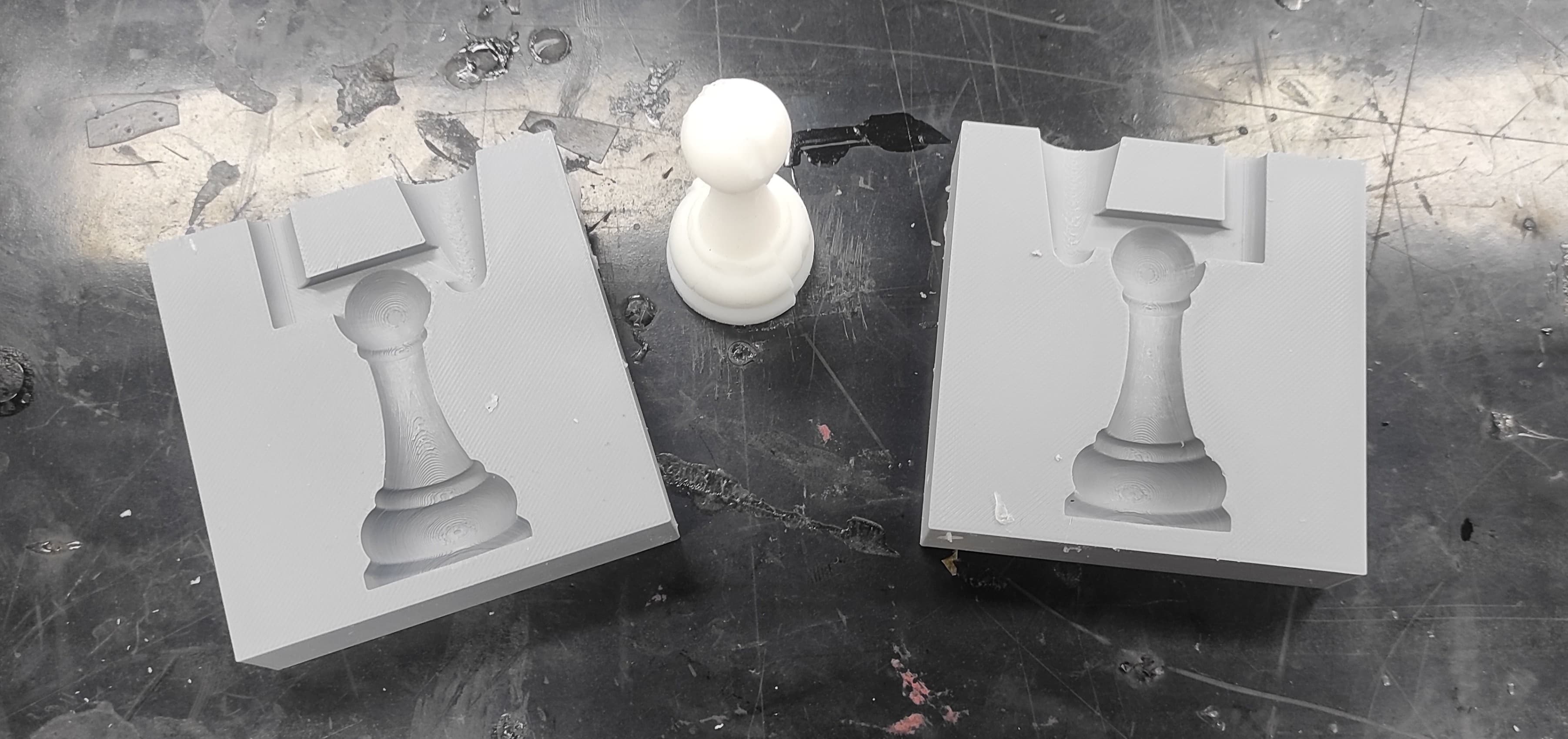I didn’t design the mold with built-in fastening or alignment features, so I had to rely on a clamp to keep the parts together. This worked, but it made assembly less precise and more time-consuming. In future designs, I would include proper locking or guiding elements to improve alignment and stability.