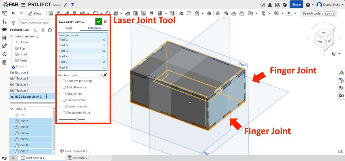 After that I used the Features Script, Laser Joint so to make the parts compatible for laser cutting.