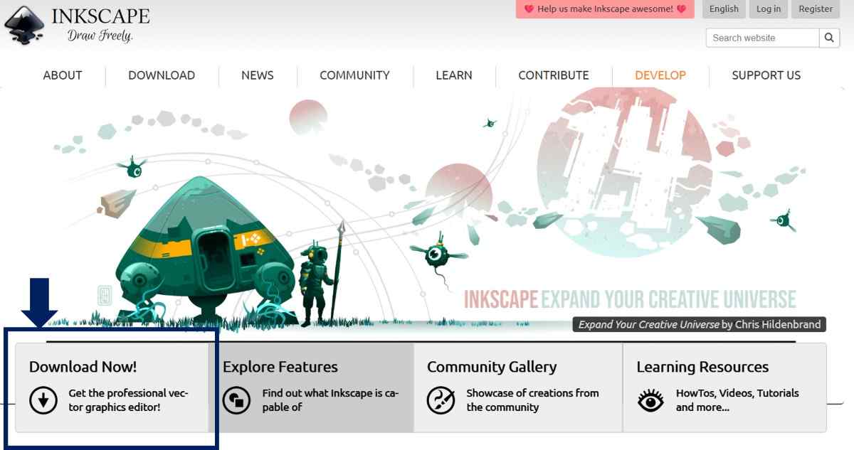 You can download Inkscape from the official website: https://inkscape.org/