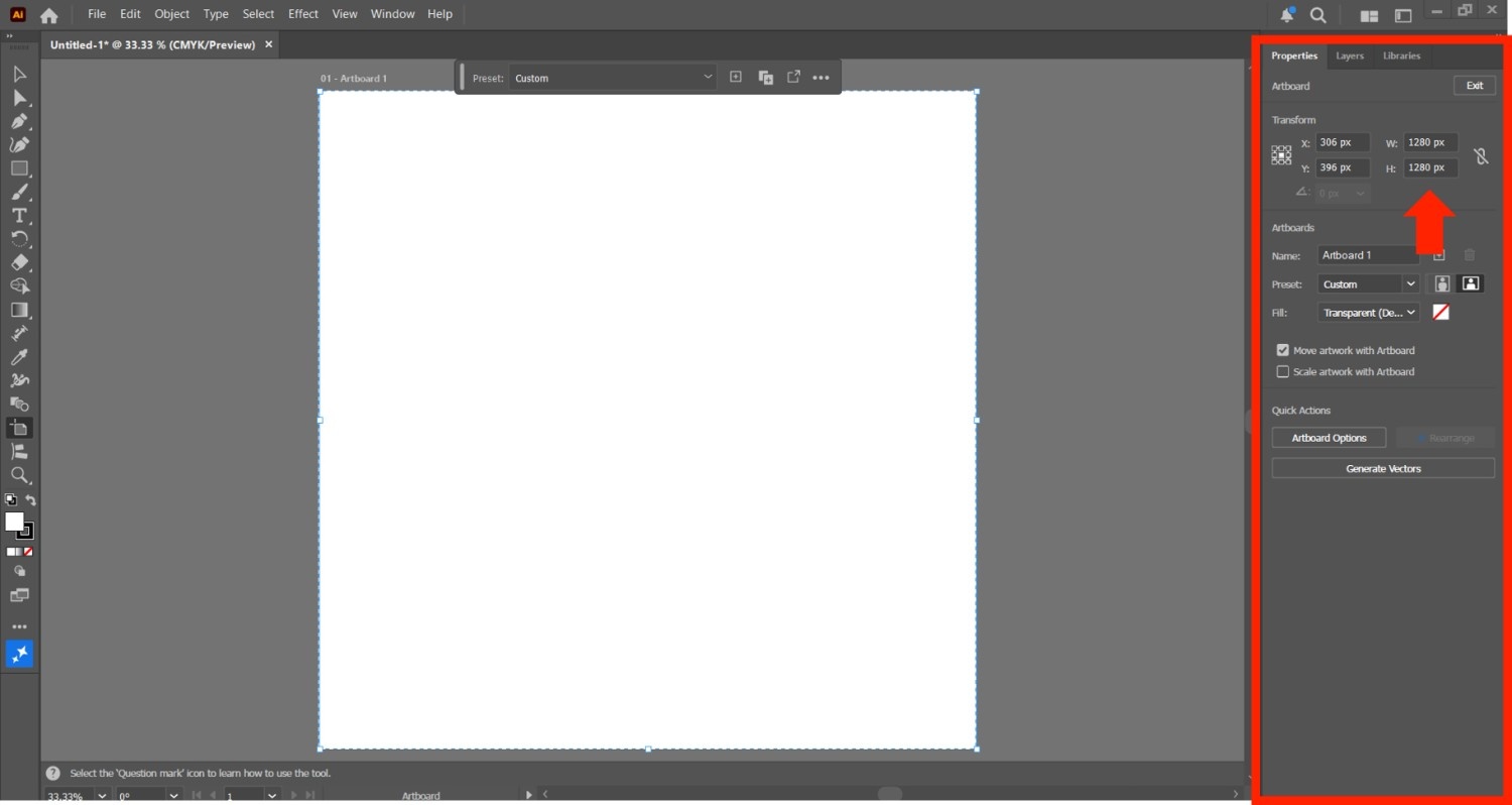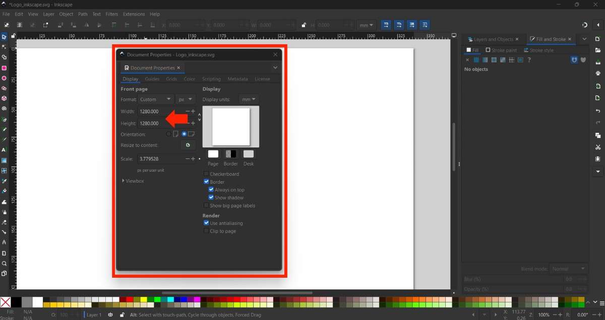 It is also necessary to set up the page dimensions for the work area. I used 1280 × 1280 px, which is more than enough.