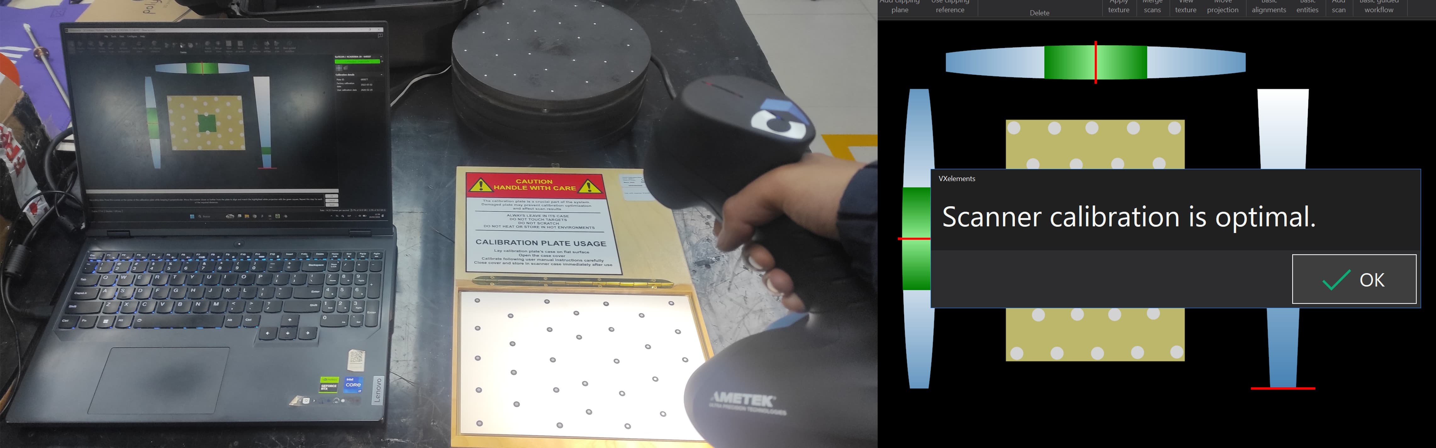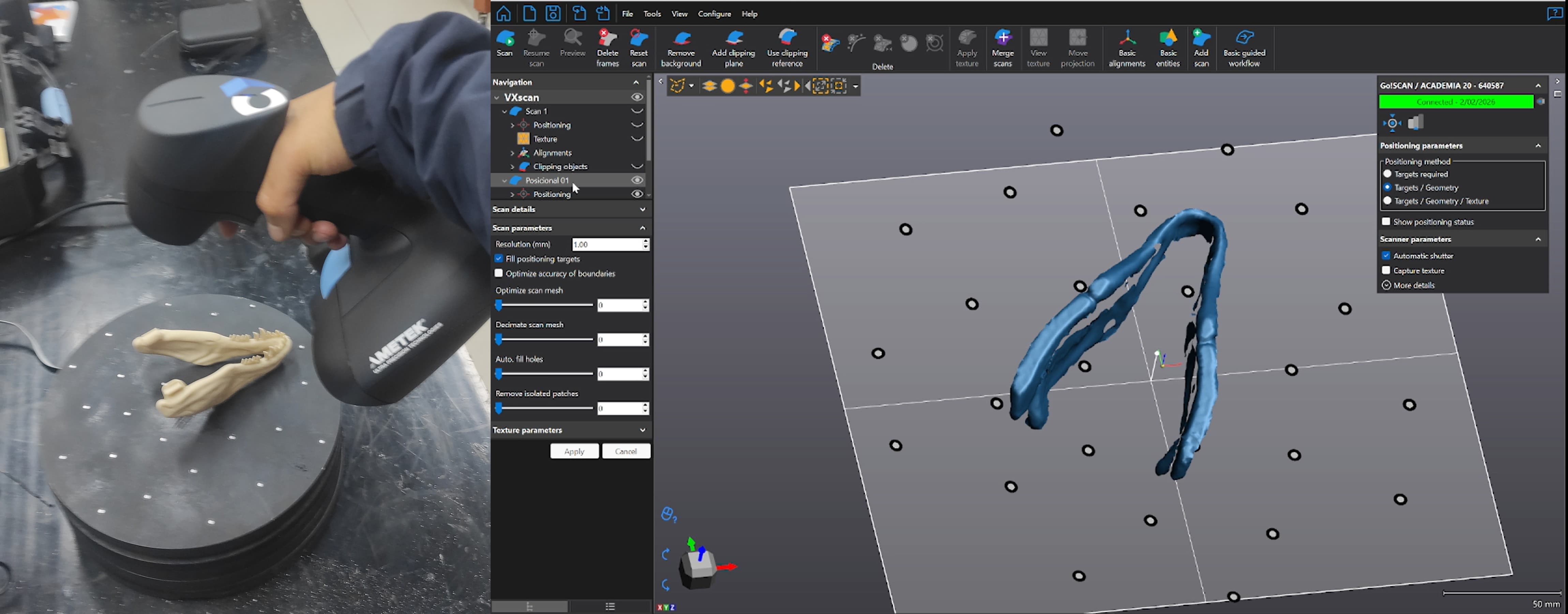 Once calibrated, I began scanning the part. The software displayed a live preview in real time, which made it easy to monitor the scan as I worked.