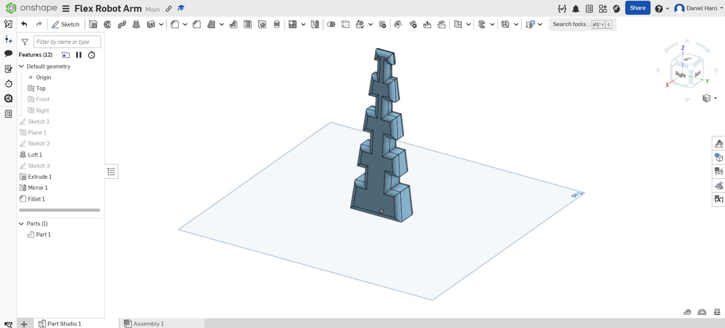 I decided to create a flexible robotic arm for future projects. I used Onshape to design it, and its flexible structure allows it to perform different movements.