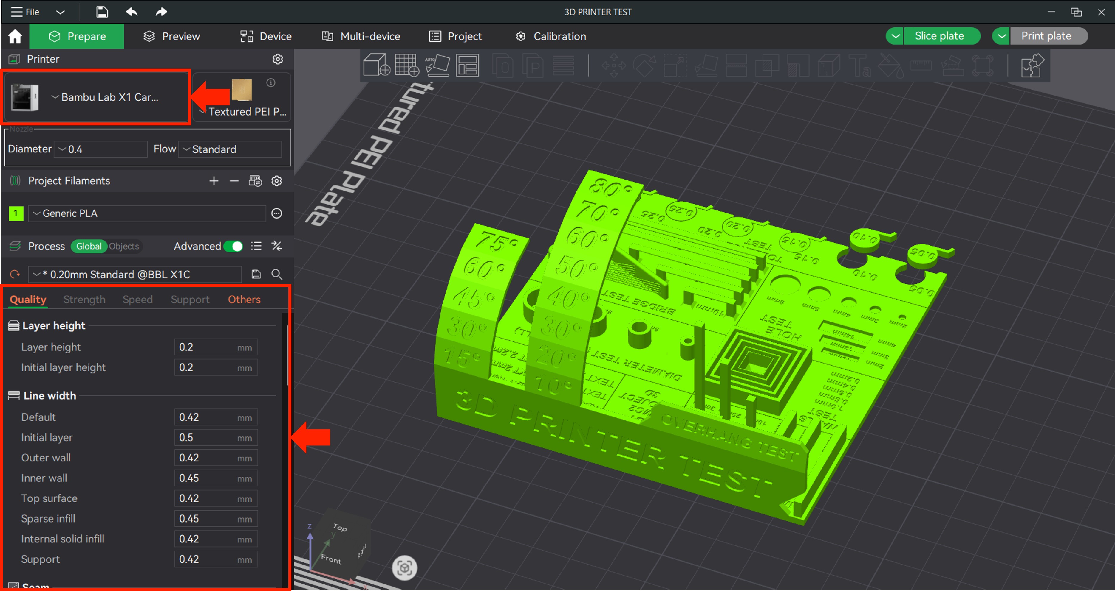 After printing the test, the results looked good. Now we need to take measurements to verify the dimensions.