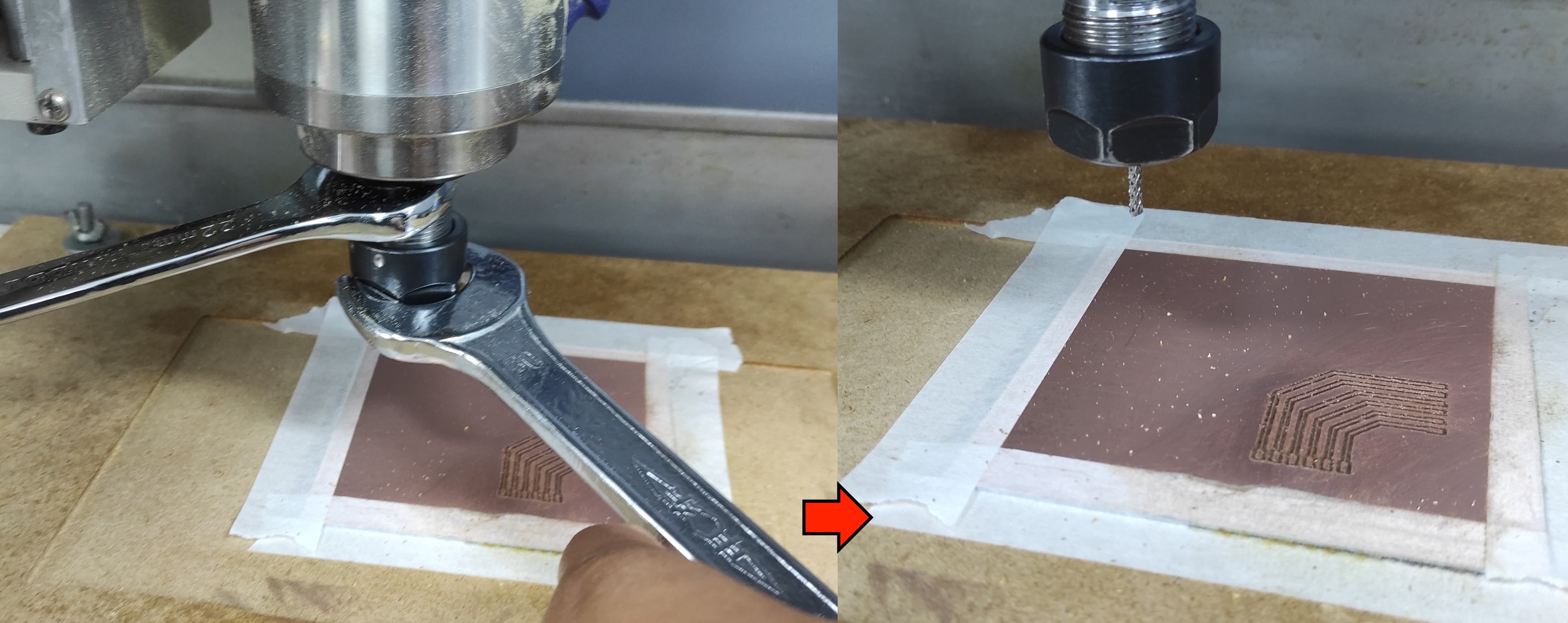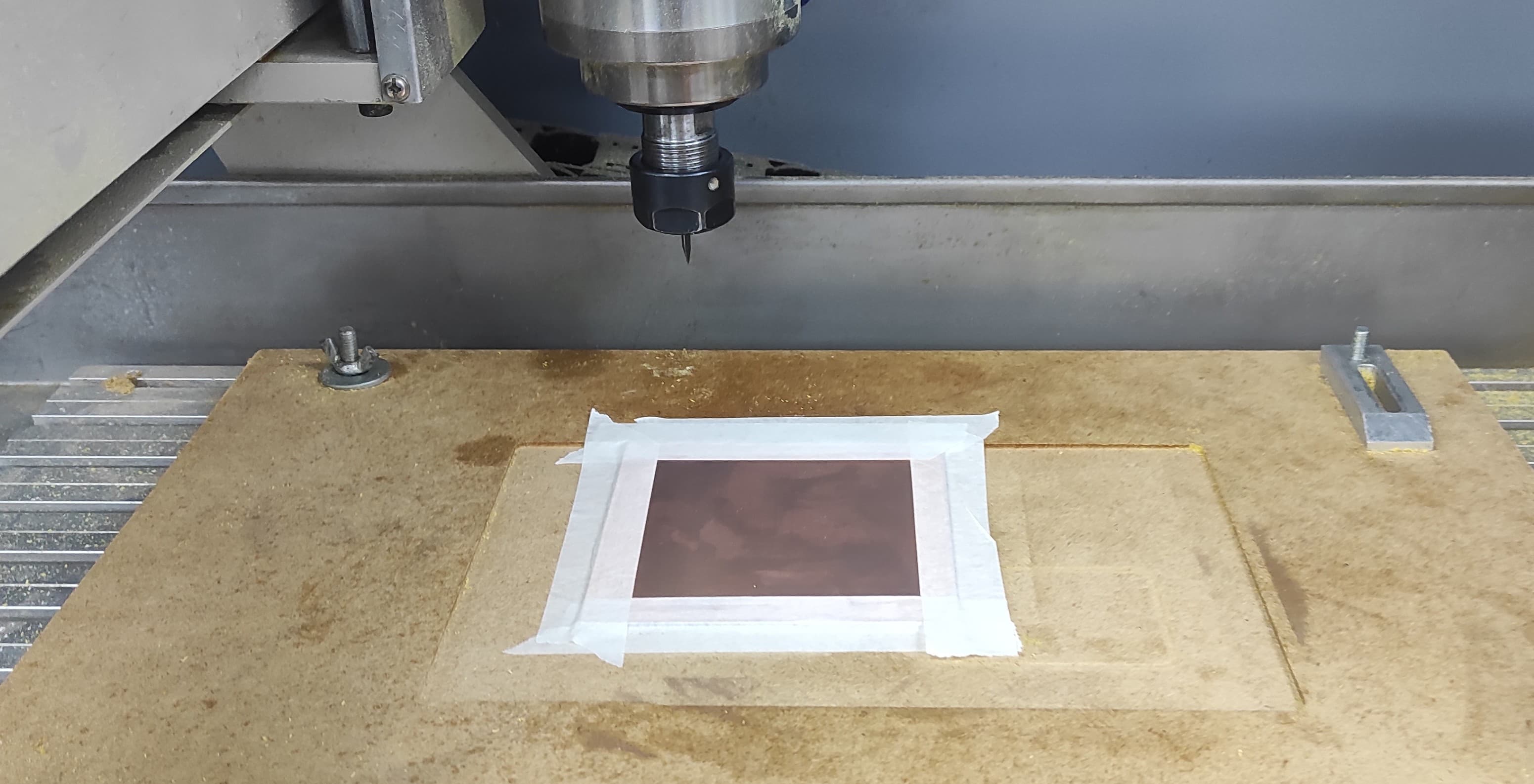Once the PCB is secured with masking tape, we are ready to begin the milling process.