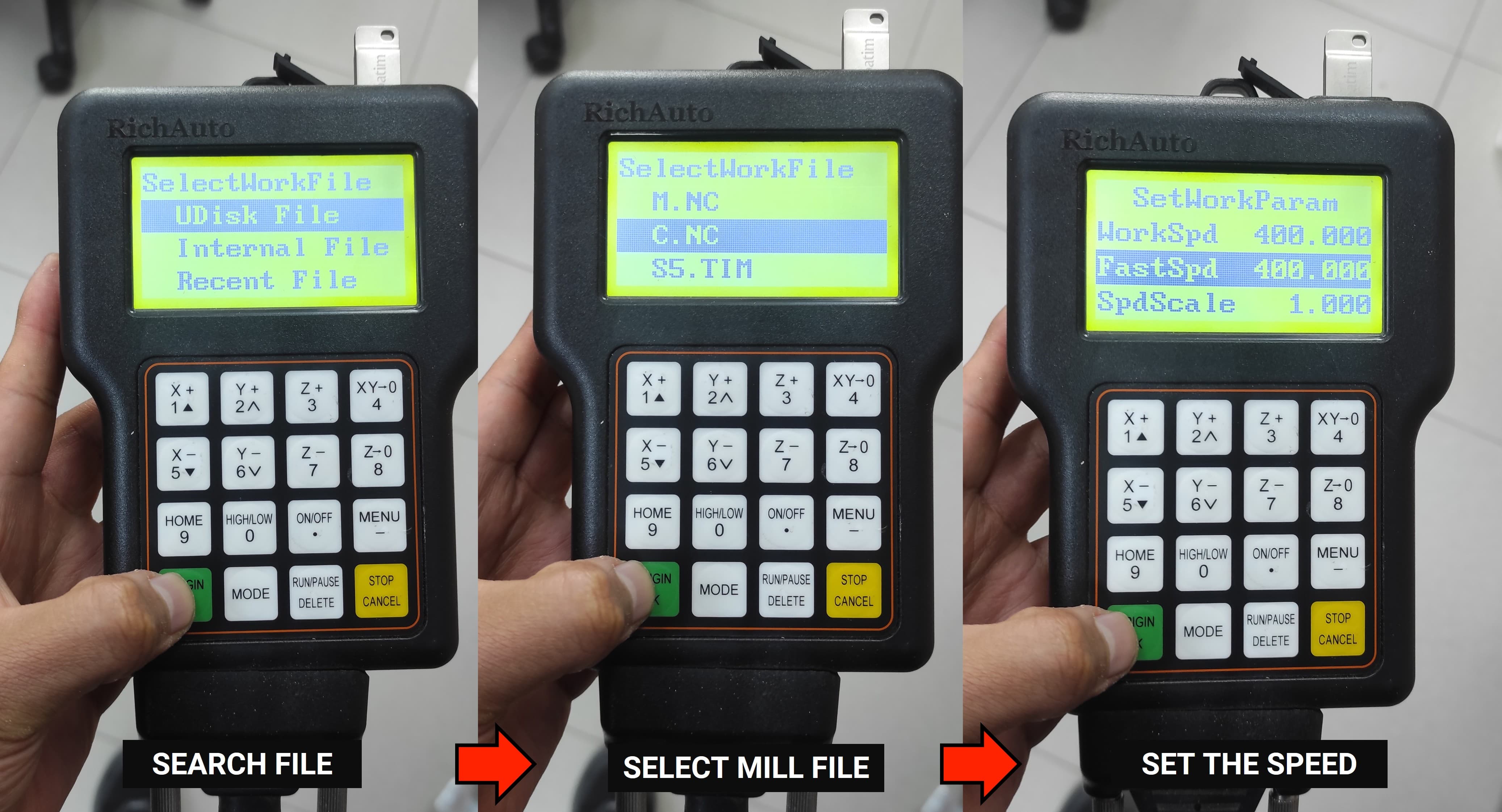 The next step is to select the file and execute the G-code.