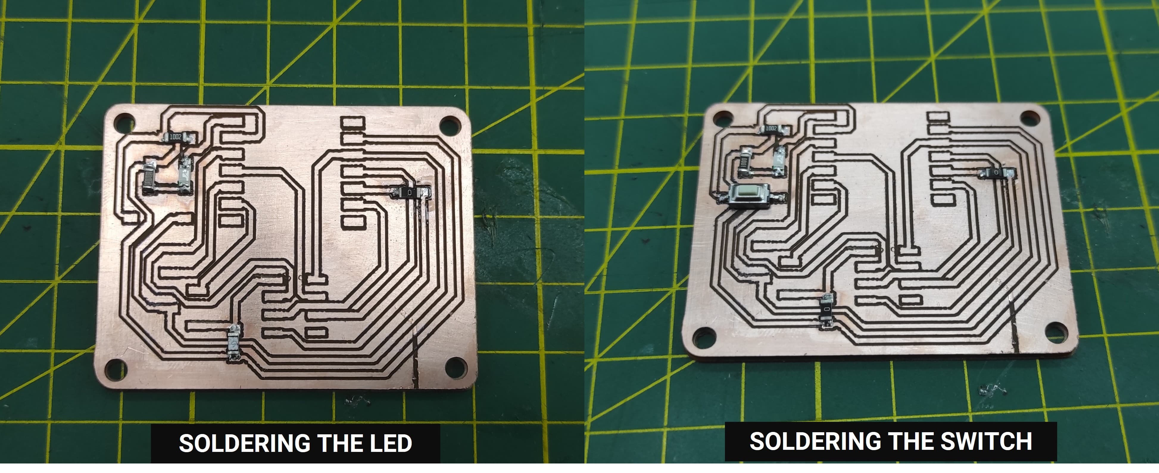 During this project, several important lessons were learned throughout the PCB design, milling, assembly, and testing process. One of the key learnings was the importance of proper machine calibration, especially setting the correct tool home position and Z-axis, since even small height variations can affect the quality of the milled traces. Performing initial milling tests helped determine the appropriate parameters, such as the tool diameter (0.2188 mm) and trace settings, which significantly improved the final results. We also learned that securely fixing the PCB material and ensuring a flat surface is essential to achieve consistent milling depth. During the assembly stage, developing careful soldering techniques was important to correctly place and connect the electronic components without creating short circuits. Finally, testing the board with simple programs, such as a basic LED blink and a button-controlled LED, helped verify that the microcontroller, inputs, outputs, and electrical connections were functioning correctly, demonstrating the importance of iterative testing and troubleshooting in the PCB manufacturing process.