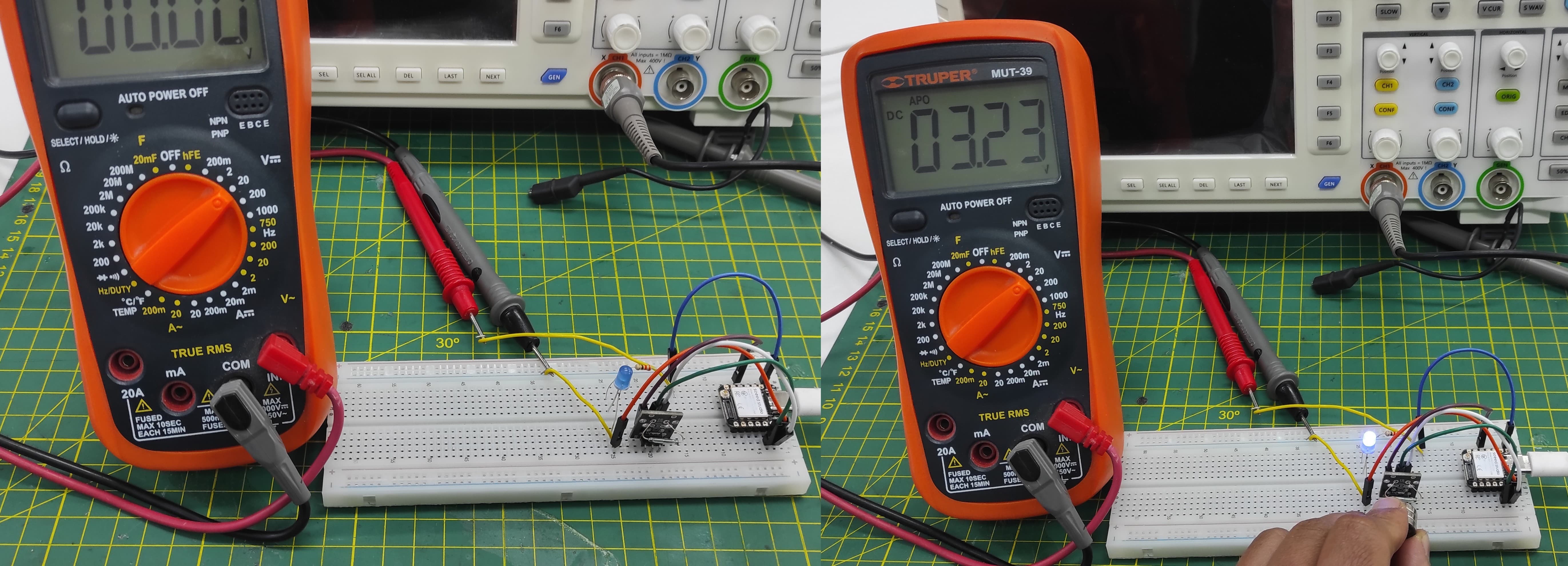 To better observe its operation, I connected an LDR photoresistor and monitored the signal using an oscilloscope.