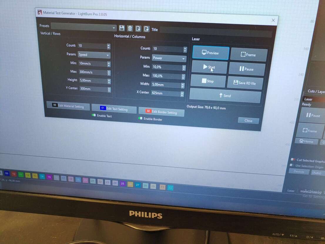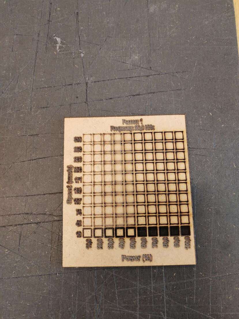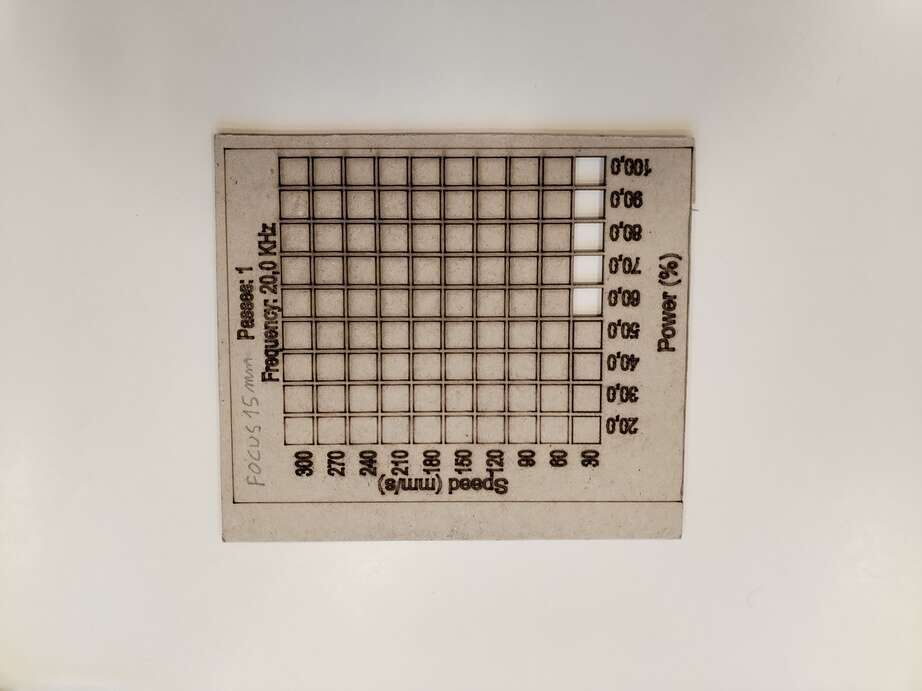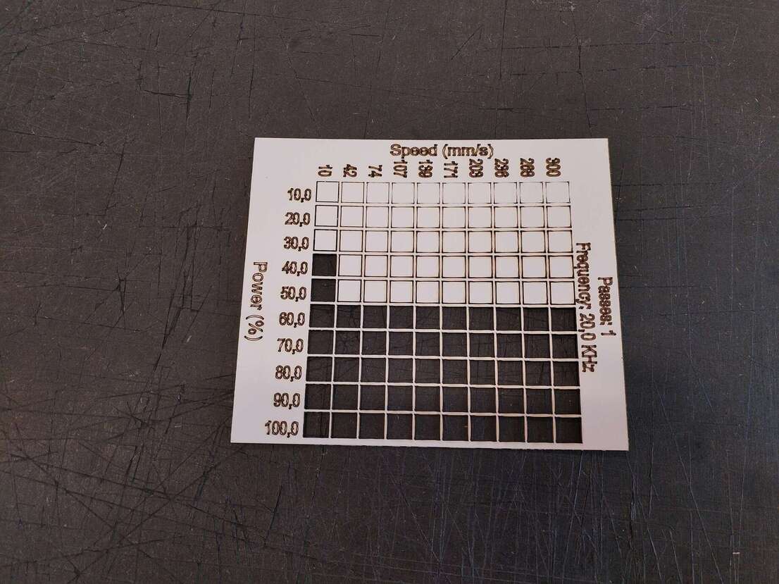 To characterize how the power and speed settings of the laser cutter influences the cut result, we will cut a grid of squares where each square will be cut with different power and speed setting. Fortunately, we don't have to design ourselves the grid since Lightburn has a feature that allows one to generate such grids.
