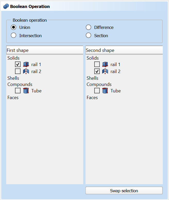 in the left picture, the Union operation is selected to be applied to rail 1 and rail 2.