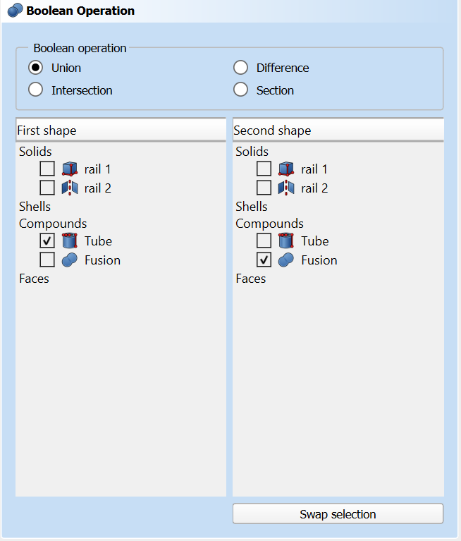 We can see the result of this first operation on the second picture: it created the compound object named Fusion.