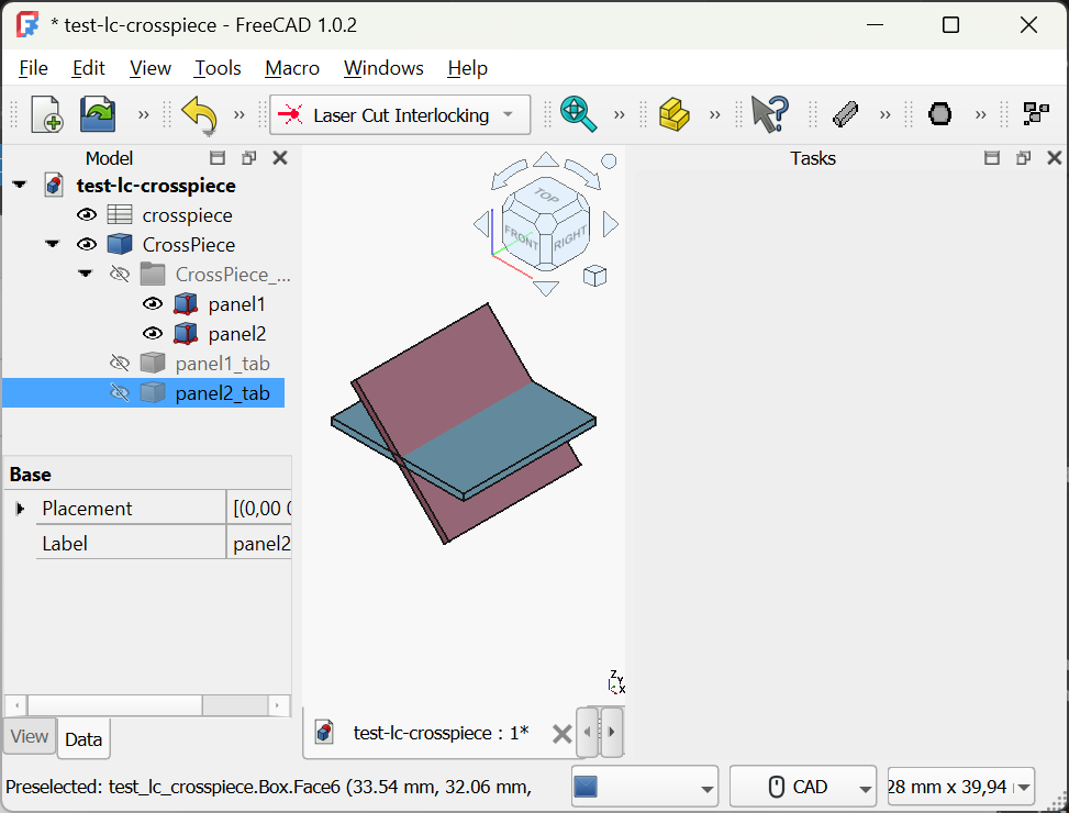I then tried to make a simple parametric press-fit assembly, to test the Crosspiece tool: