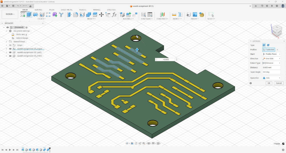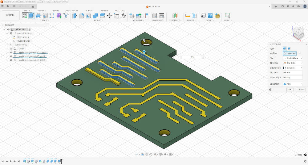 To simplify extruding the tracks and pads, I have to do multiple steps, first I have to combine every tracks and pads together.