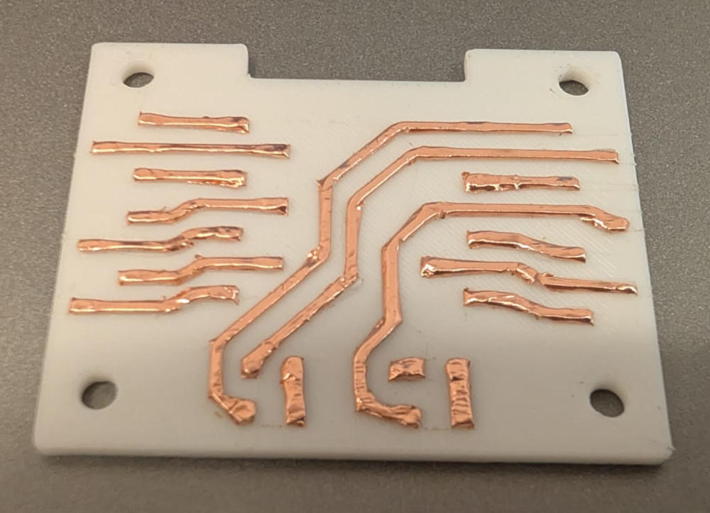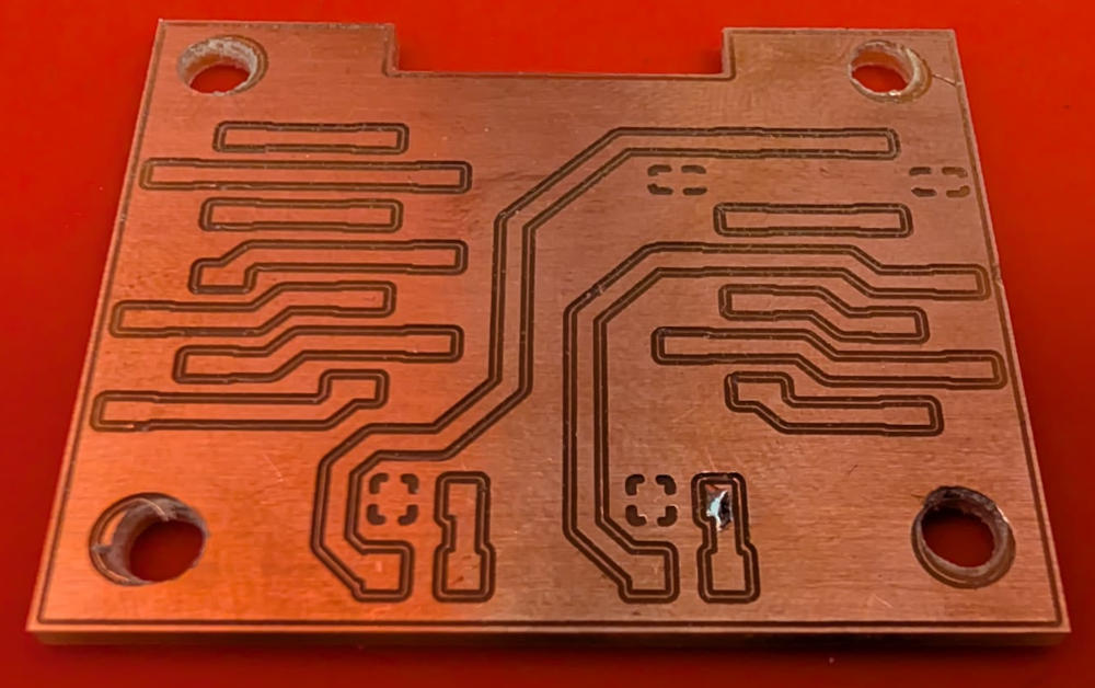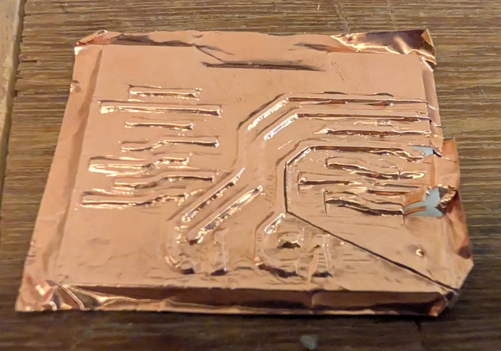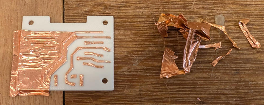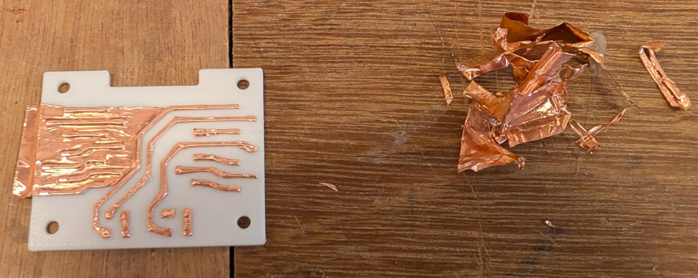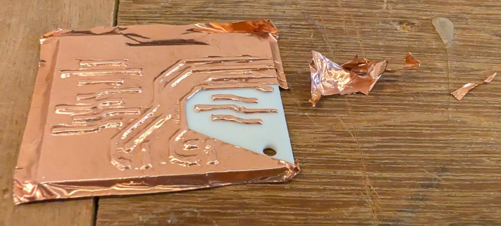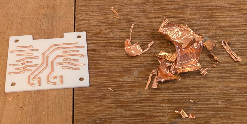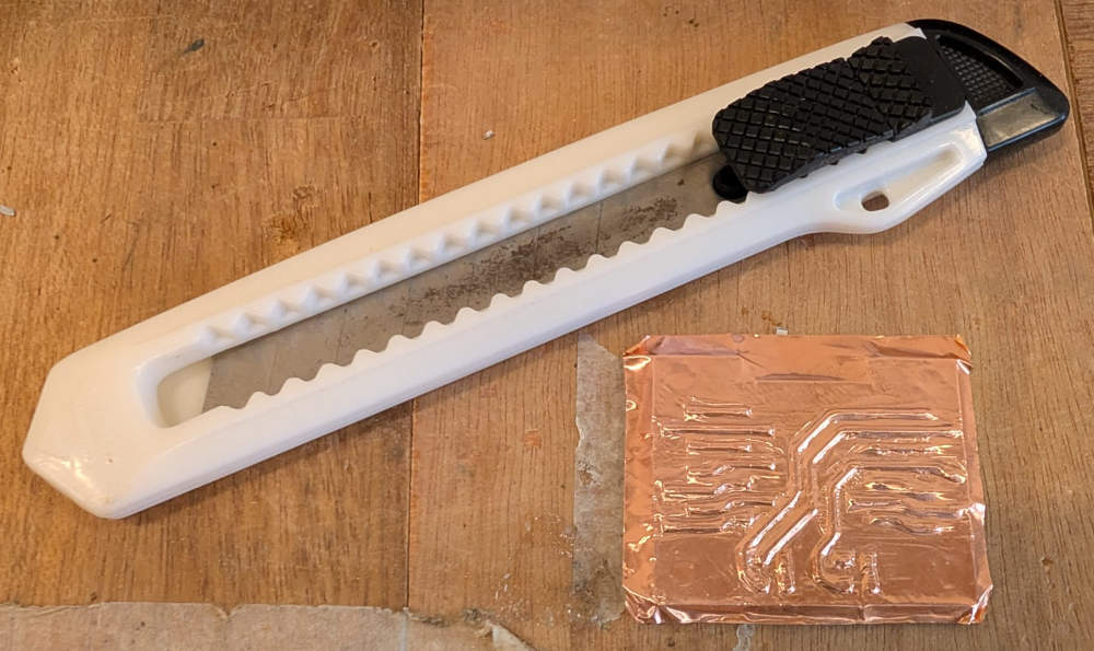 Finally, I use a cutter to remove the excess copper and keep only the copper on the tracks.