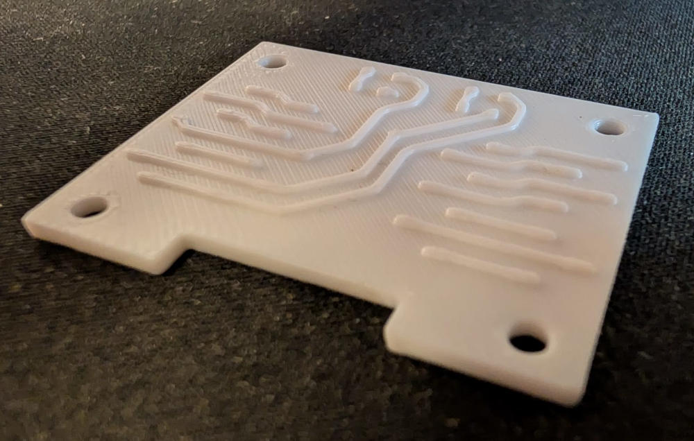 I apply the tape on the 3D printed PCB and use the screwdriver to push the tape down and make sure it sticks and fits.