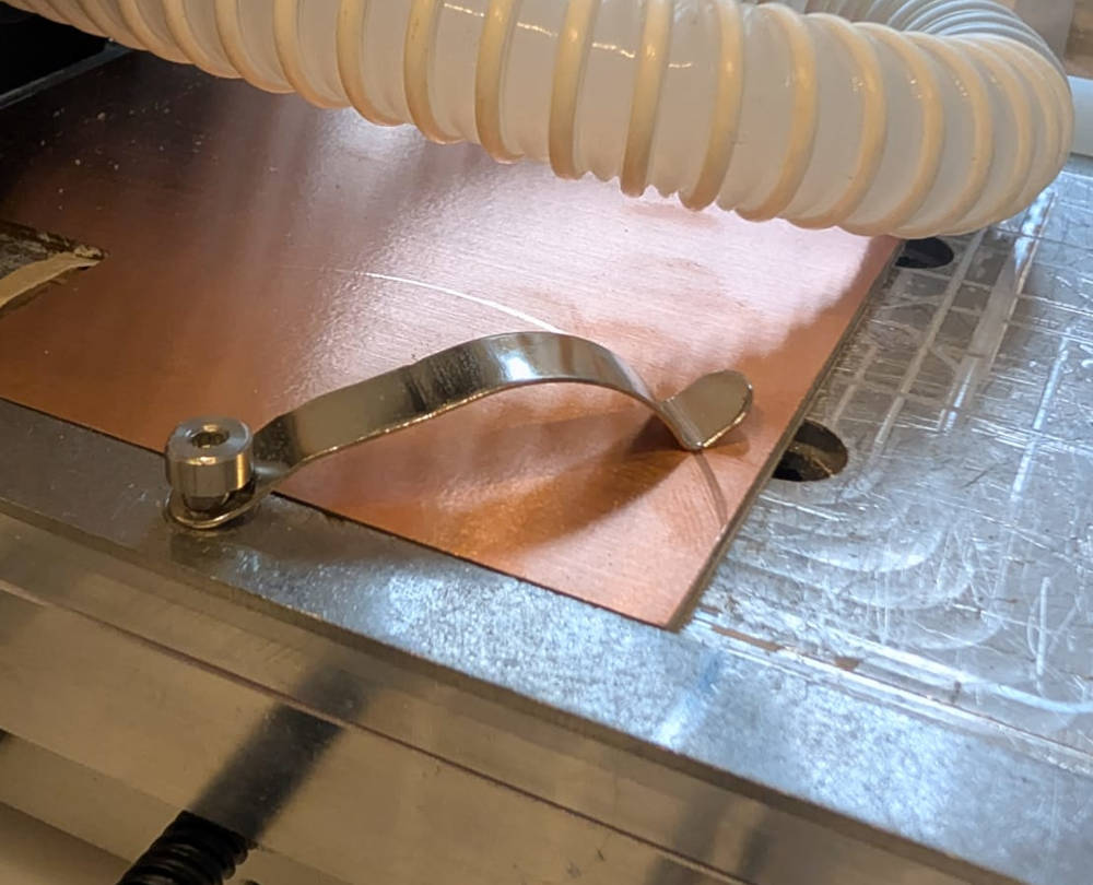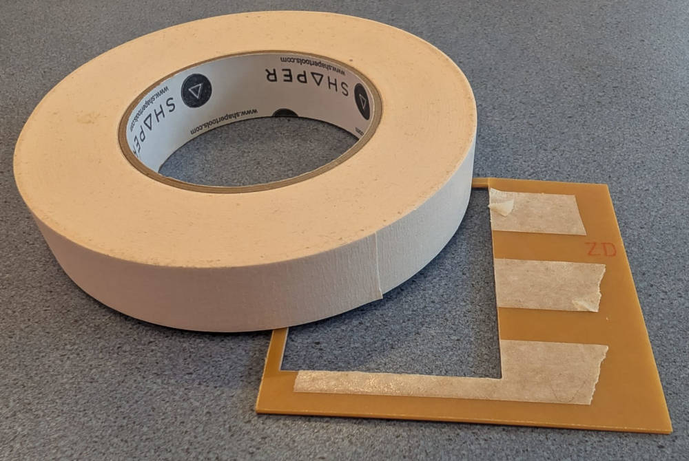 To start, I have to cut the board (I use a FR2 board) and use double sided tape to stick the board to the bottom left of the bed, above the bracket.