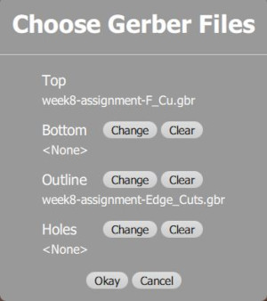I can now import my 2 gerber by pressing Open Files under Plans and put them in the correct place : front/top layer for Top and edge layer for Outline then press Okay.