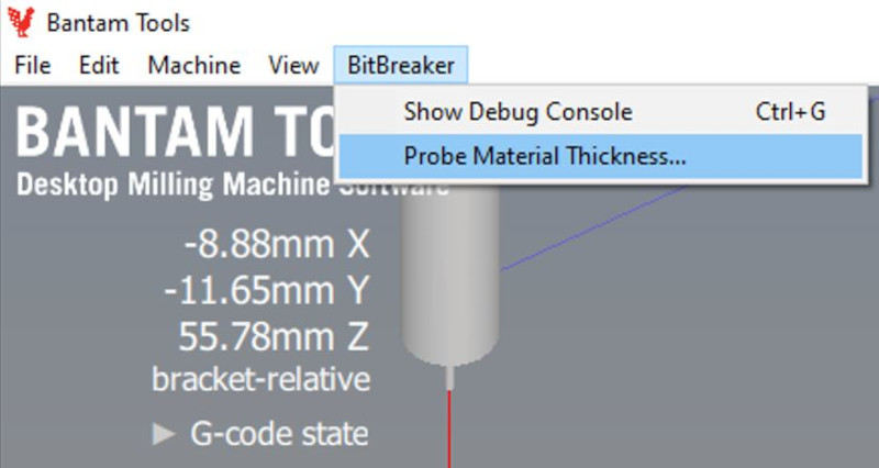 To determine the height of my PCB, I press BitBreaker in the top bar and select Probe Material Thickness....
