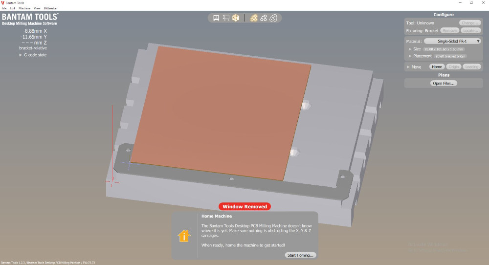 When turning the machine ON and opening Bantam Tools, the software asks me to do an automatic machine homing.