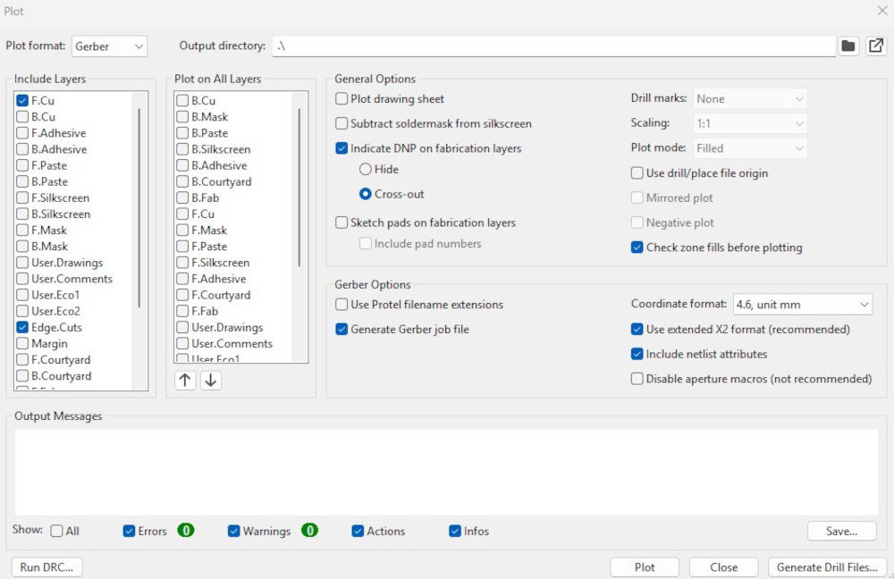In this case, I check the front/top and edge layers of the PCB. The rest is left by default.