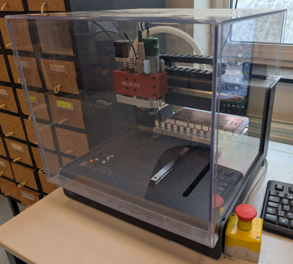 The machines also have a vacuum cleaner connected to it to vacuum the milled bits as well as integrated securities in case of opened window/case.