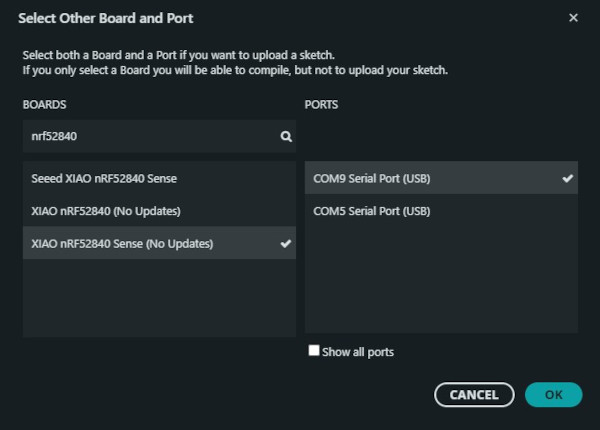 For the wireless communication, I'll use two SEEED XIAO-nRF52840 Sense to communicate between each other via BLE (Bluetooth Low Energy).