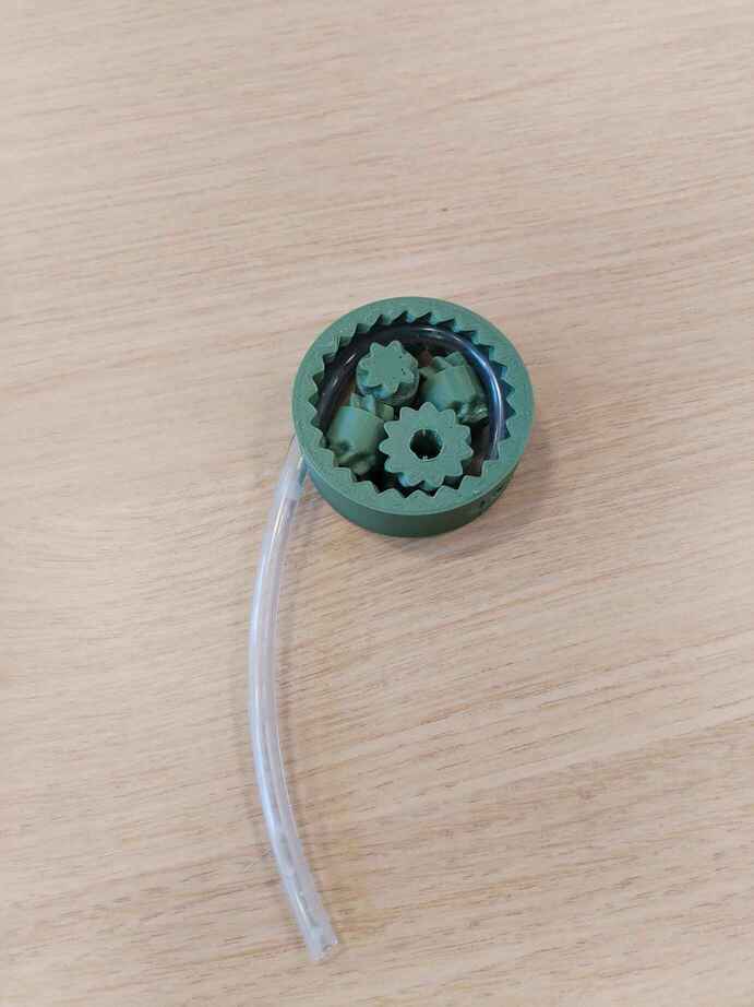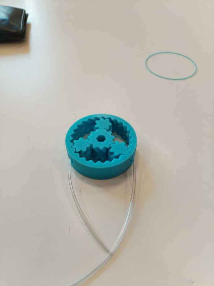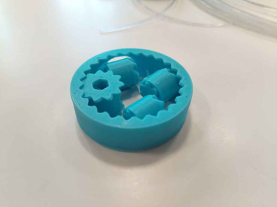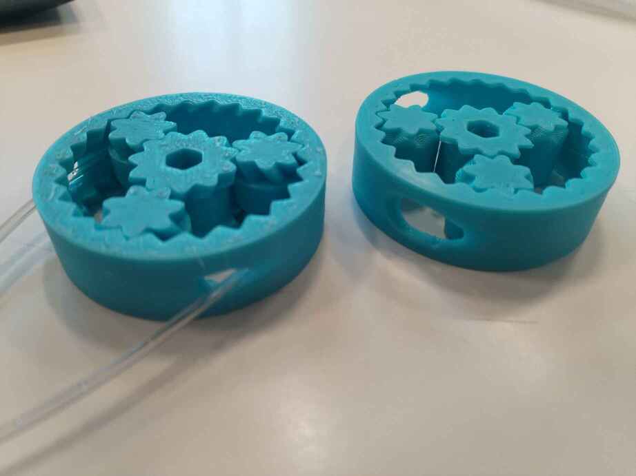 This week is the right time to start testing 3D printed peristaltic pumps for my final project. There are a lot of different models available but I found one on Nicolas webpage that is single piece and hence highlighting the strengths of a 3D printer. Indeed such a model could not be made substractively since the gears are nested in the circular part :