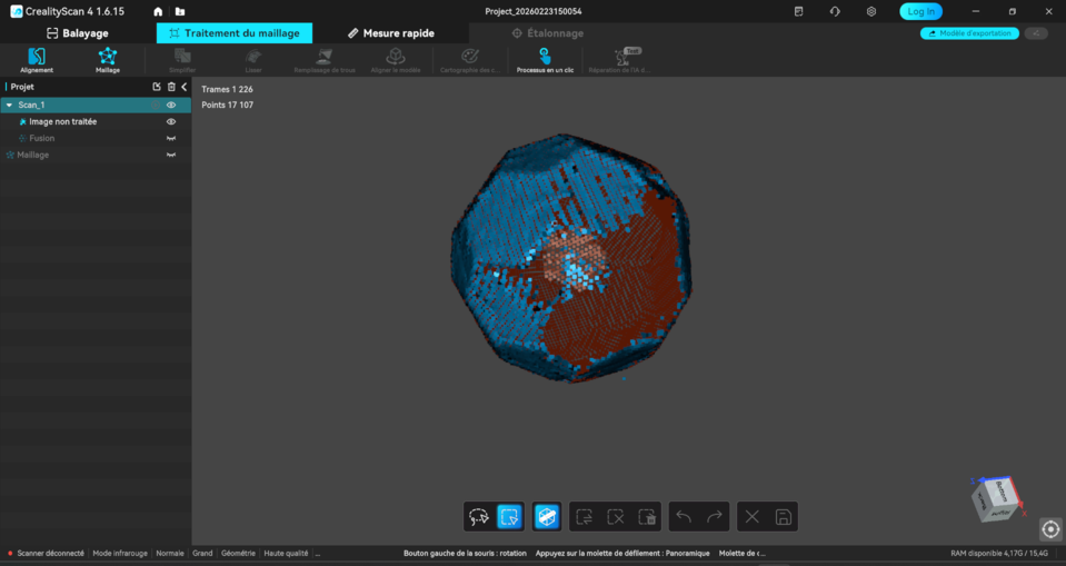 I then started the postprocessing with the Fusion operation and got a lot of artifacts (maybe there was some points I did not see previously) :