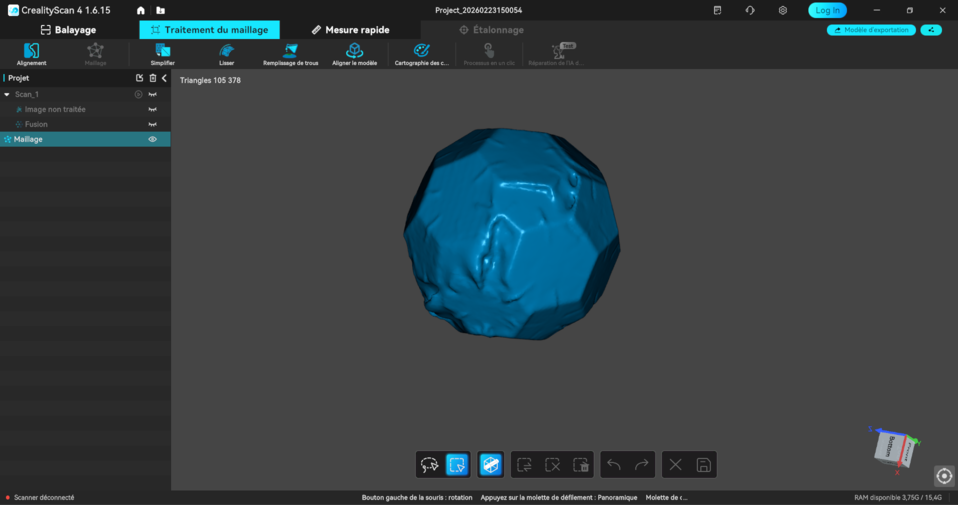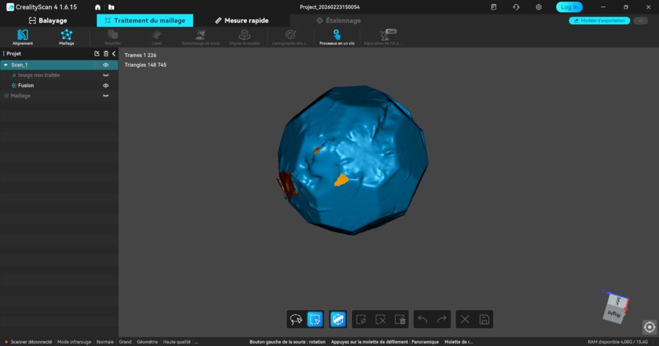 The scan shows pretty clean angles but there are a lot of surface artifacts that look like paint. Maybe I should retry with a more homogeneous lighting.