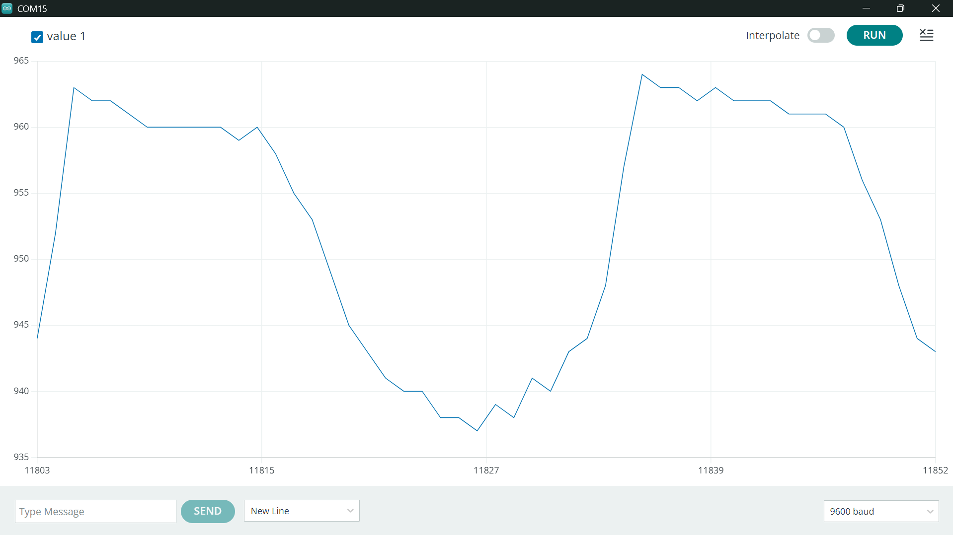 It works ! The data are coming to my computer and I see them through the Arduino IDE Serial Monitor. It is of course more convenient to use the Serial Plotter and below you can see that it works :