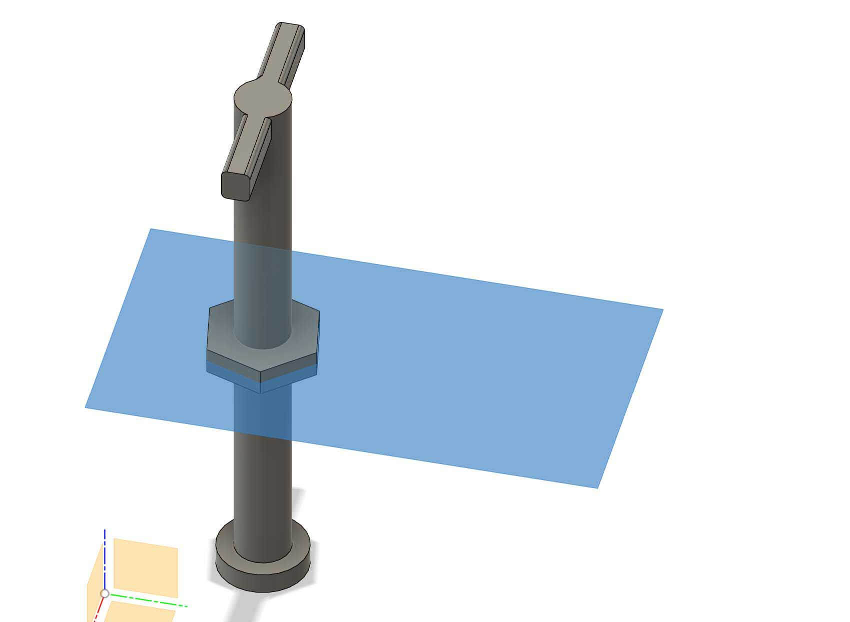 I placed a new sketch on one end of the rod and created a rectangle to serve as the handle for the rod and then extruded it downwards to join with the rod.