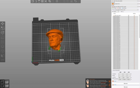 The file was incomplete and doesn't show the entirety of my head. As a consequence, I exported it as an STL, imported it into PRUSA slicer. The file was too large for the build plate and needed to be resized.