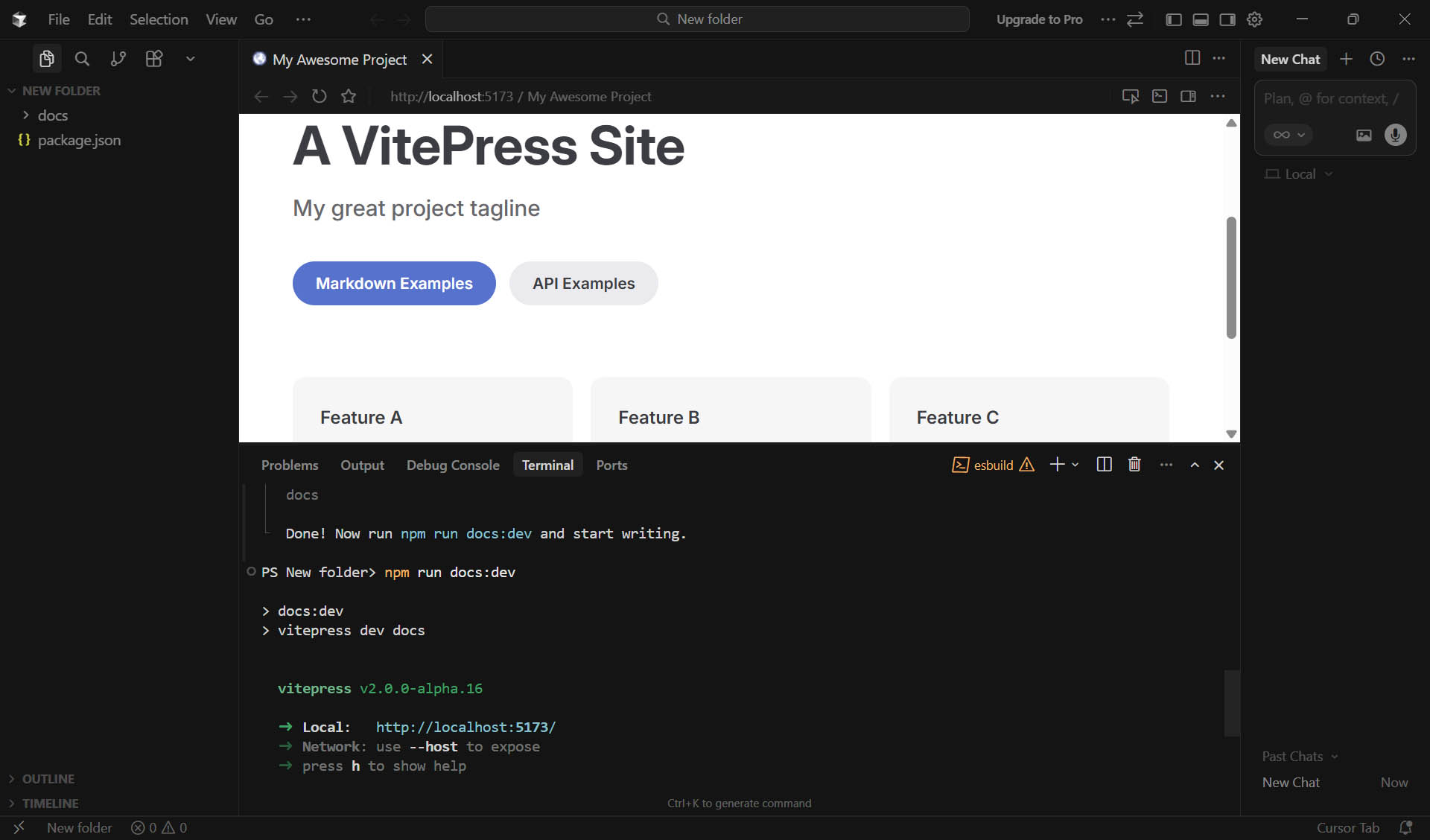 └ Done! Now run pnpm run docs:dev and start writing.Now, we need to preview: