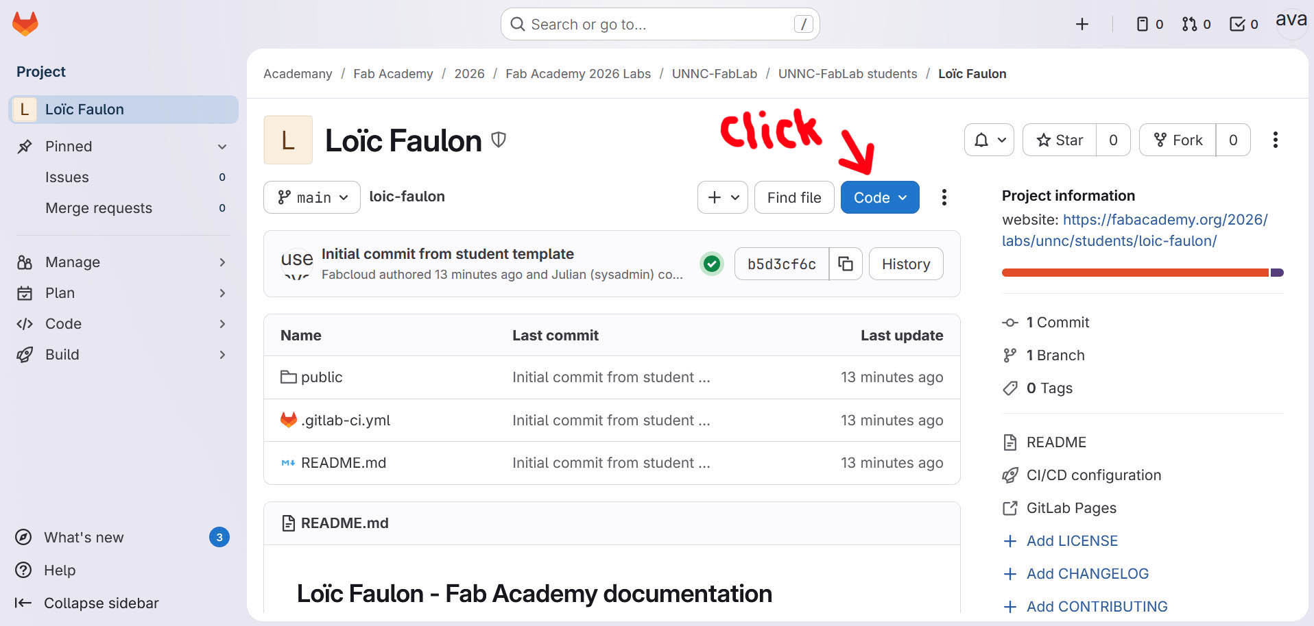 My GitLab repository is “loic-faulon” but in the picture above it is “new folder”. I built all VitePress settings and forgot the origin VitePress version ,so I build a new one to show the process.