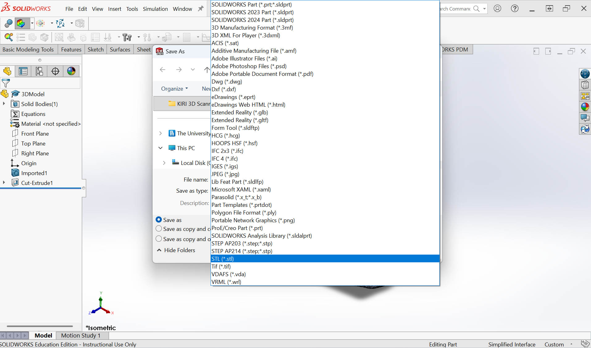 Step 3: Save as STL for 3D printing