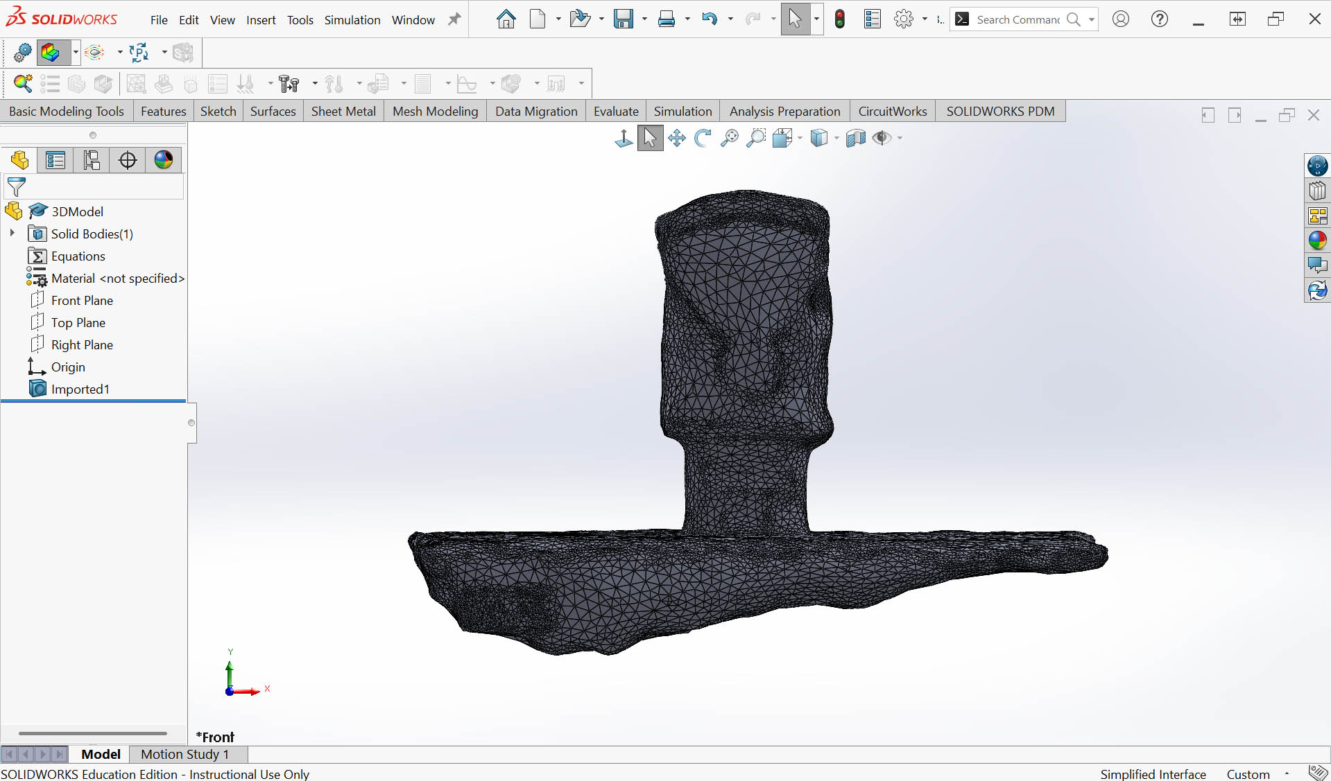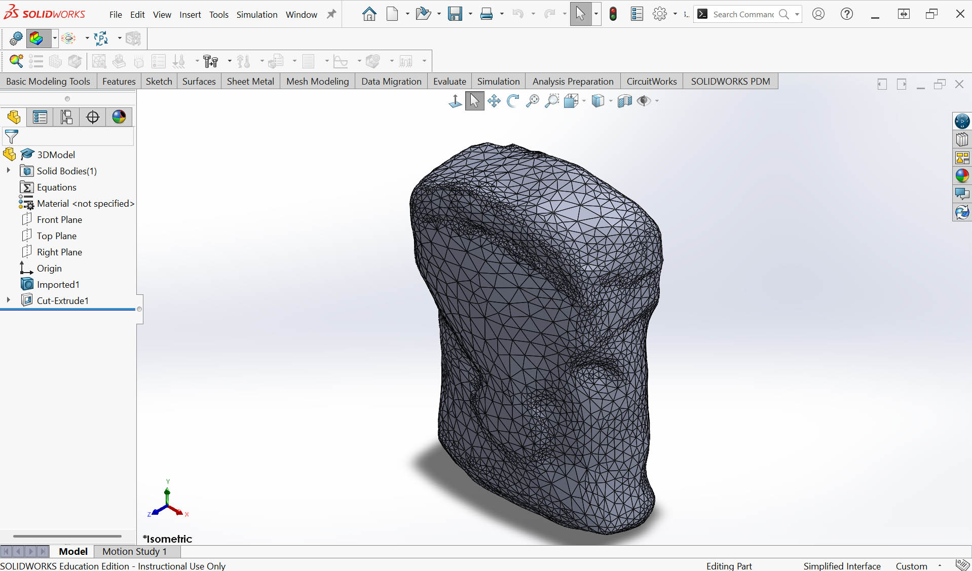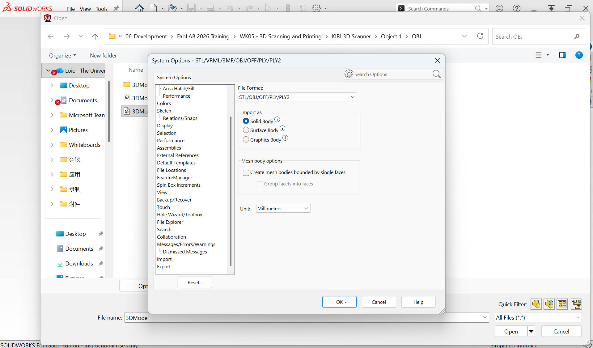 Step 1: Import the OBJ file in SolidWorks as "Solid Body"