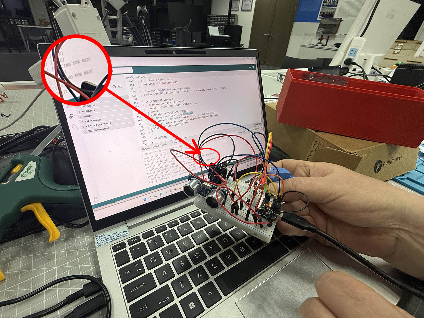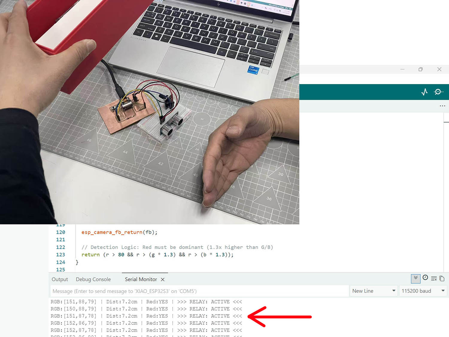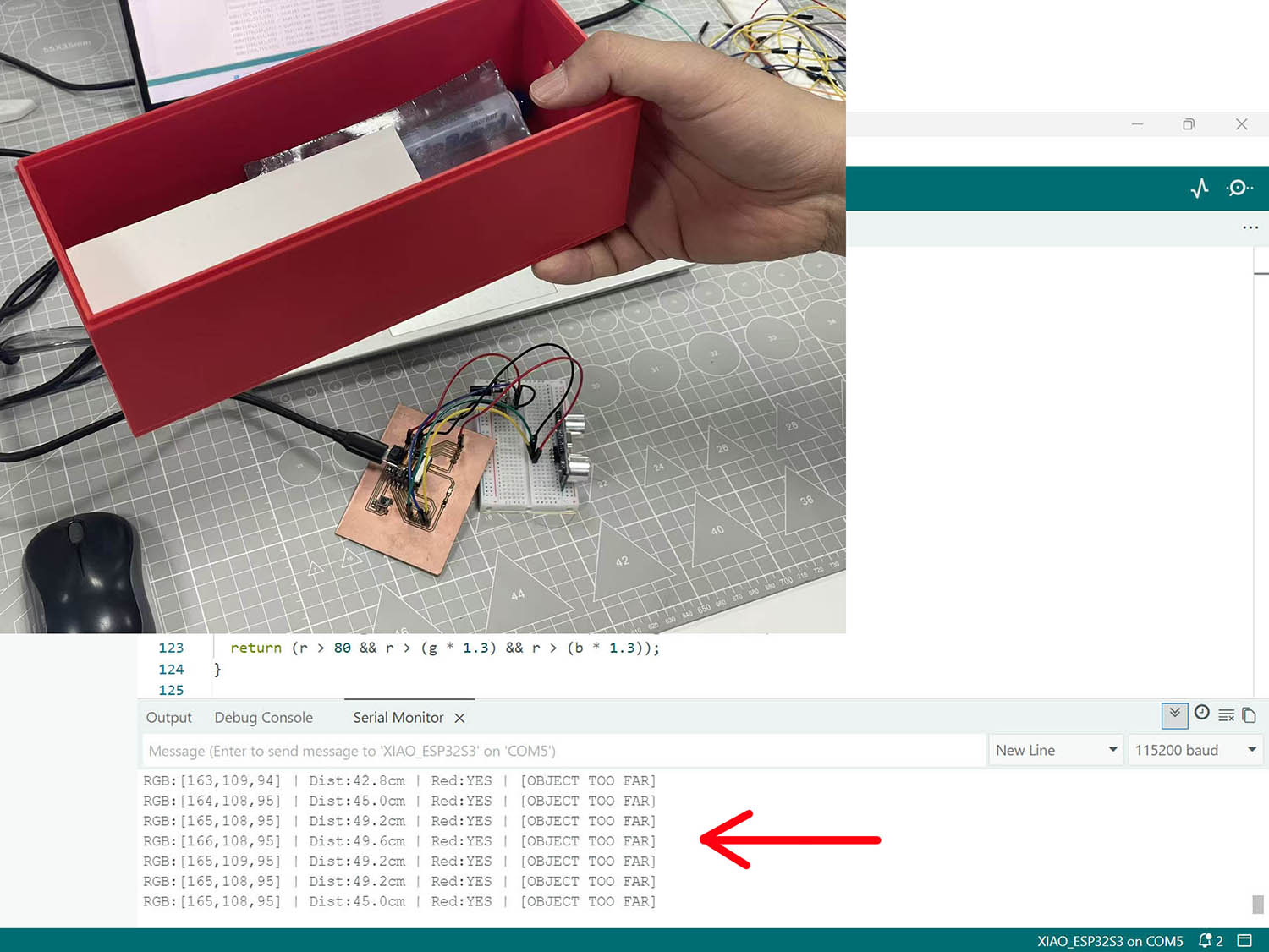 Serial.printf("| Dist:%.1fcm | Red:%s | ", distance, isRed ? "YES" : "NO");