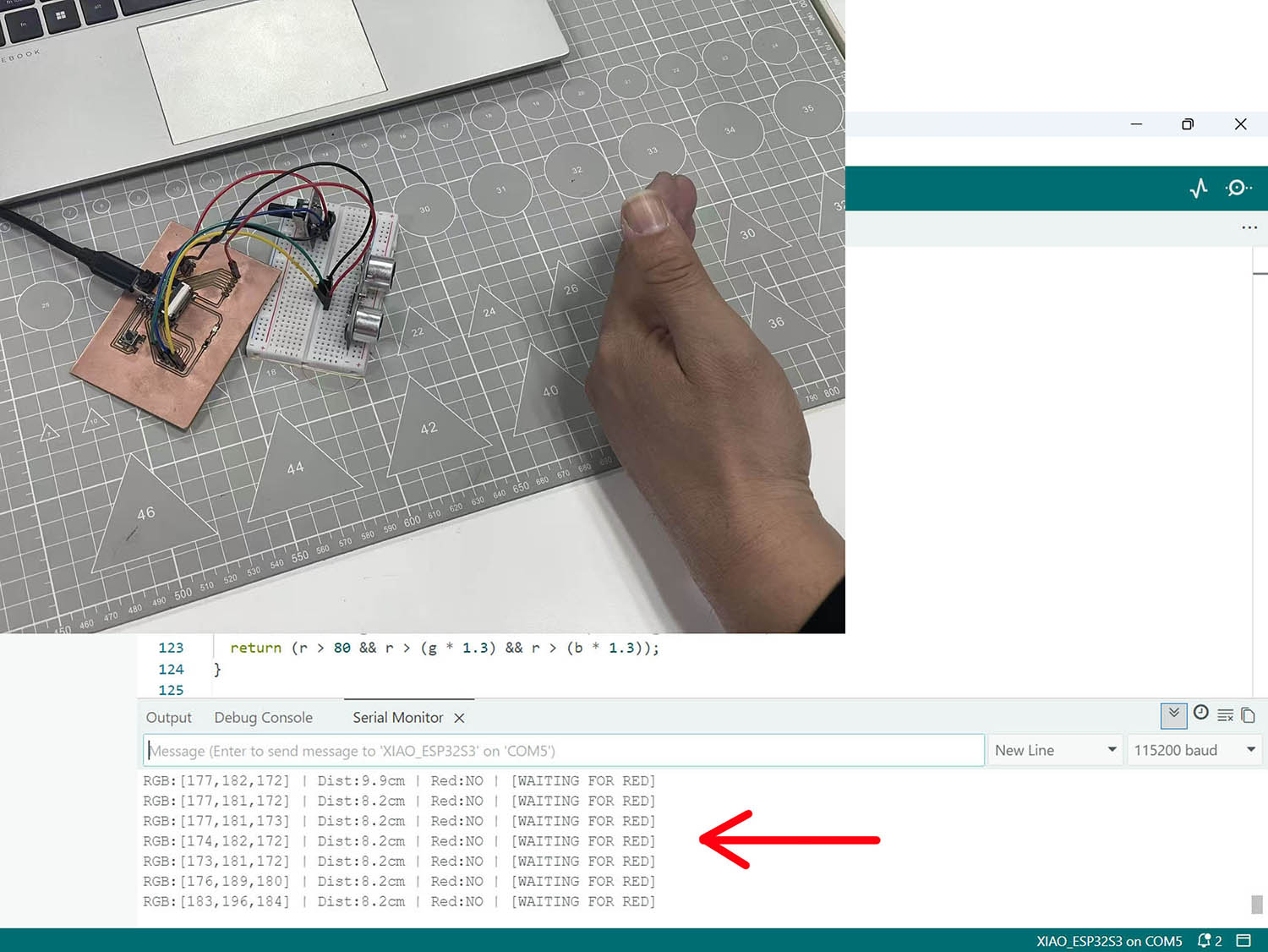 if (isNear && !isRed) Serial.println("[WAITING FOR RED]");