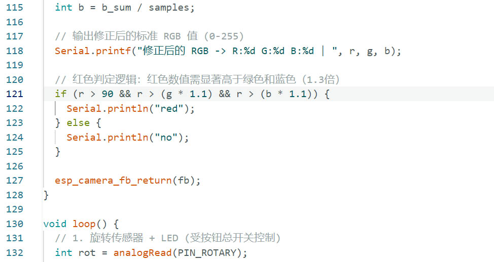 Following other prompts to debug and improve the codes, I also manually refined the RGB settings for identifying the Red color with the microcontroller camera: