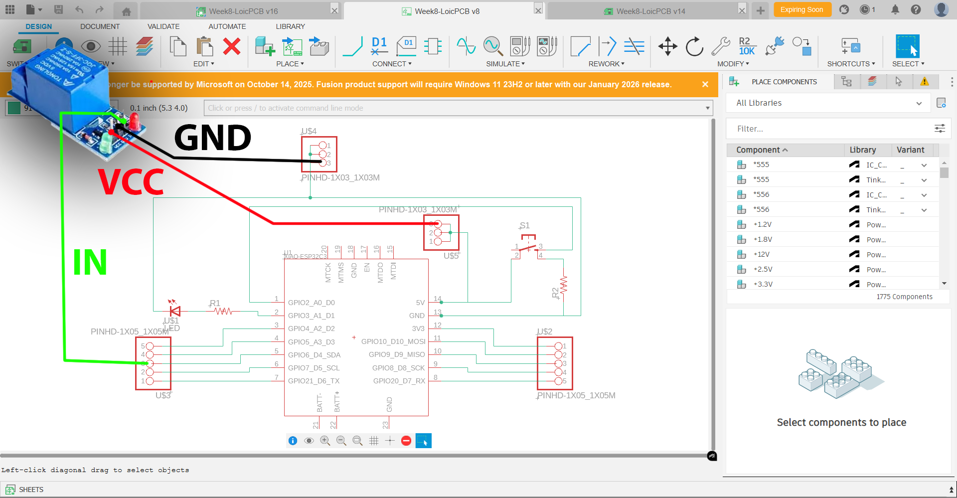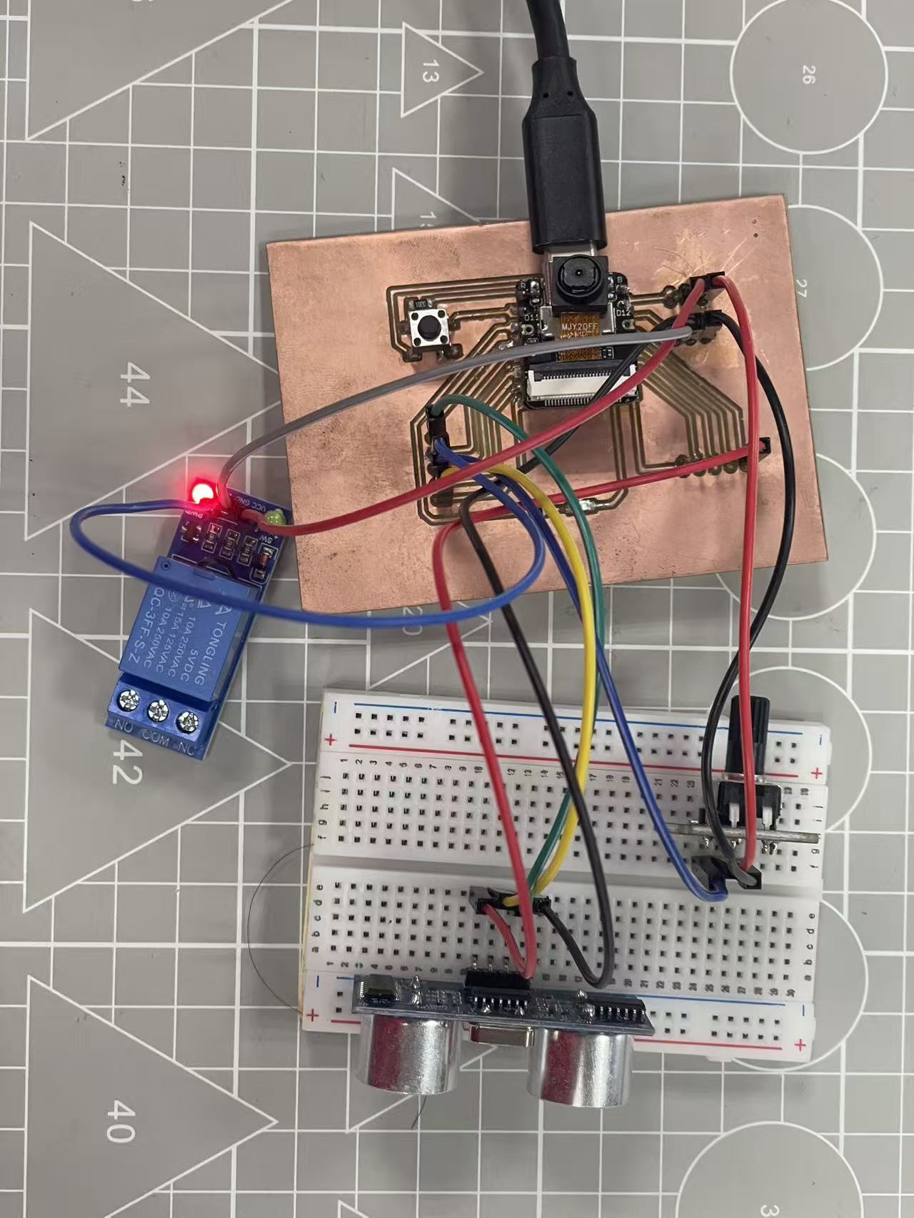 This first Output Device test is the continuity of my Input Device test (week 9) which should trigger a Relay as Output (reference: JOC-3FF-S-Z) when two Input conditions are fulfilled: Object within 25cm + Red colour detected = Relay ACTIVATED.