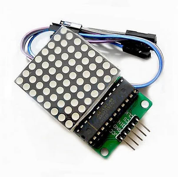 The chip also contains an internal current regulator that protects the LEDs and maintains consistent brightness. In addition, the intensity control circuit allows the brightness of the display to be adjusted through software. Because of this efficient internal structure, the MAX7219 can control up to 64 LEDs in an 8×8 matrix while requiring only a few control pins from the microcontroller.