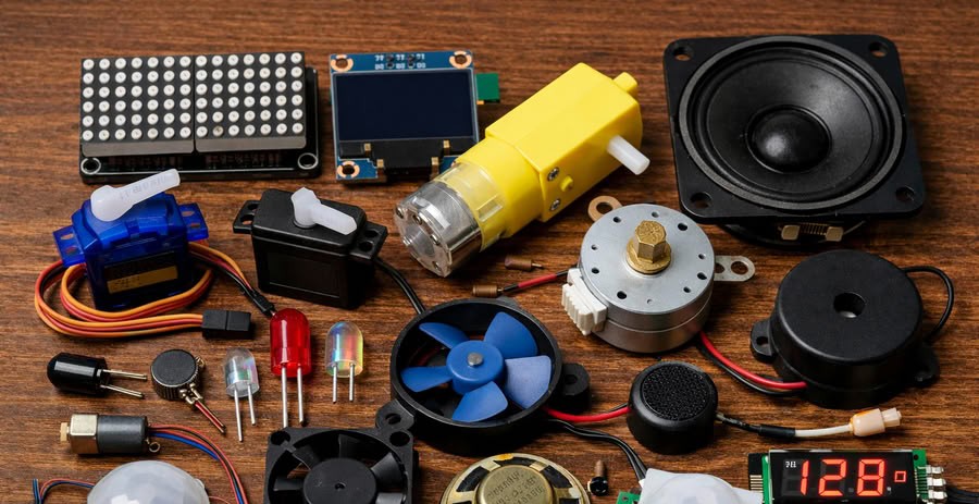 Output devices are essential components in electronics and computer systems that allow a system to communicate its results to the external environment. Unlike input devices, which send data or signals to a microcontroller or computer, output devices receive signals from the system and convert them into forms that humans or other machines can perceive or use. These devices can produce visual, auditory, or mechanical outputs, making them versatile tools in both simple and complex projects.