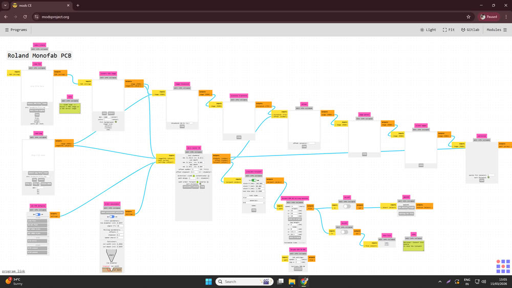 I used Mods CE to convert the PNG files into G-code for PCB milling.