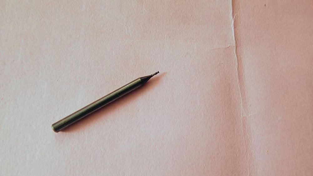 A 1/64 inch end mill is a very small cutting tool used for fine PCB milling, especially for cutting the thin copper traces on a circuit board. The diameter of a 1/64 inch tool is approximately 0.4 mm, which allows it to create precise and narrow paths between PCB traces.1/64 inch end mill is mainly used for trace cutting.