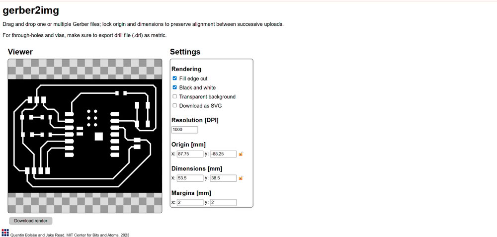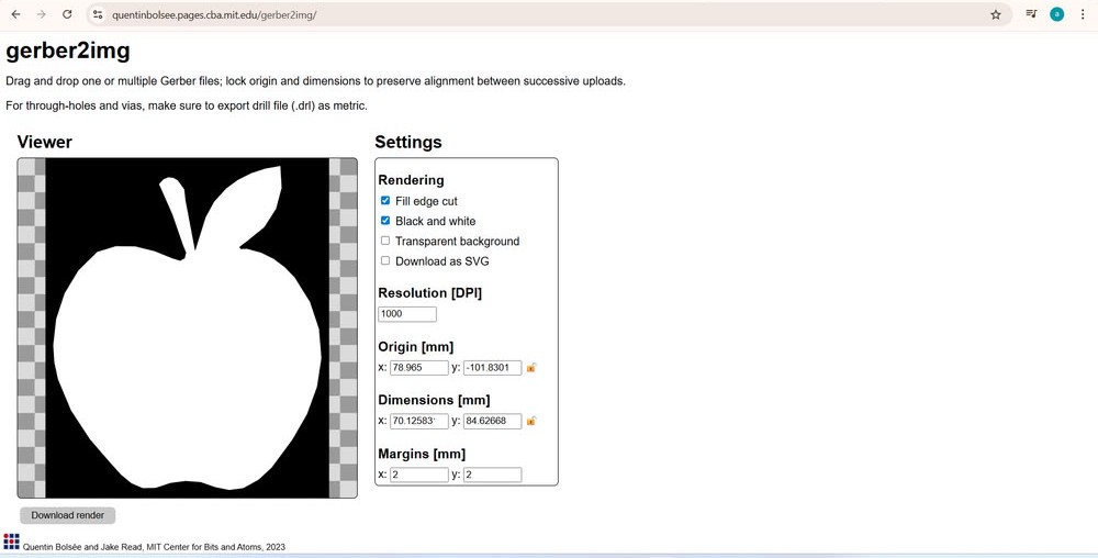 I used Gerber2Image to convert my PCB Gerber file into a PNG image. First, I selected the F.Cu (Front Copper) file and dragged and dropped it into the software. After loading the file, I chose the black and white rendering option to clearly show the PCB traces. Then, I saved the rendered output as a PNG file, which can be used for PCB milling.